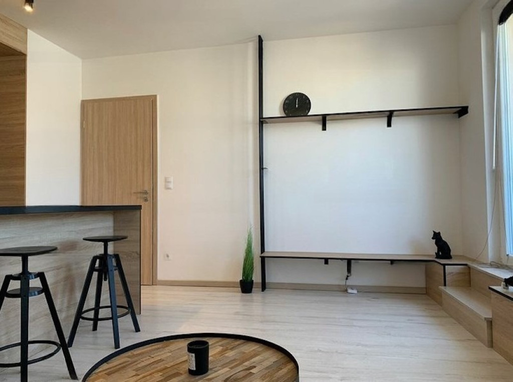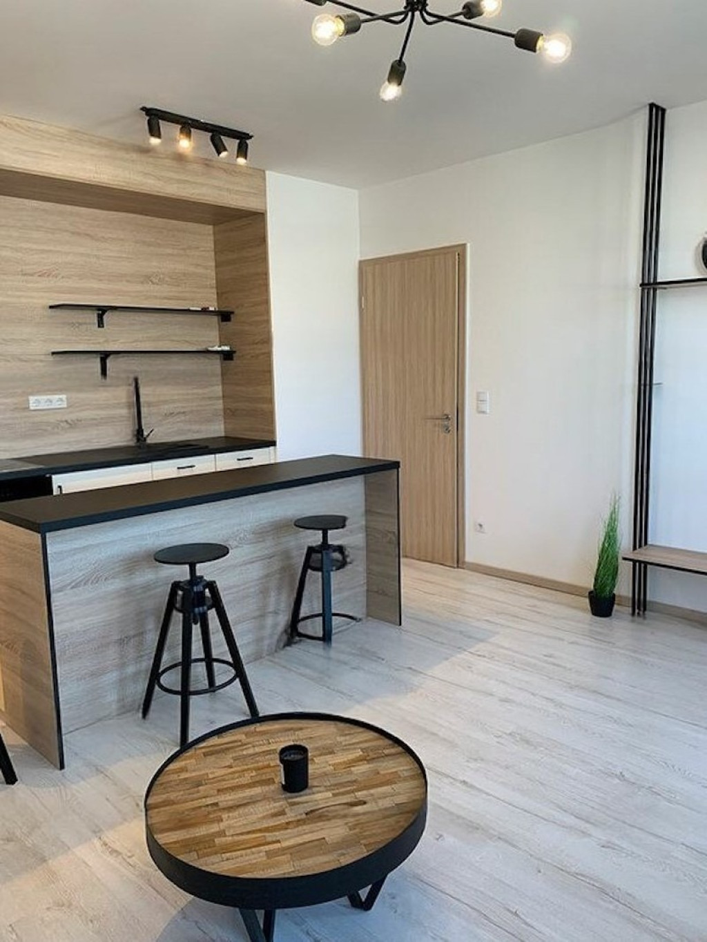 Egy fél szoba, amerikai konyhás nappali, wc és kádas fürdő szoba egy helységben található.