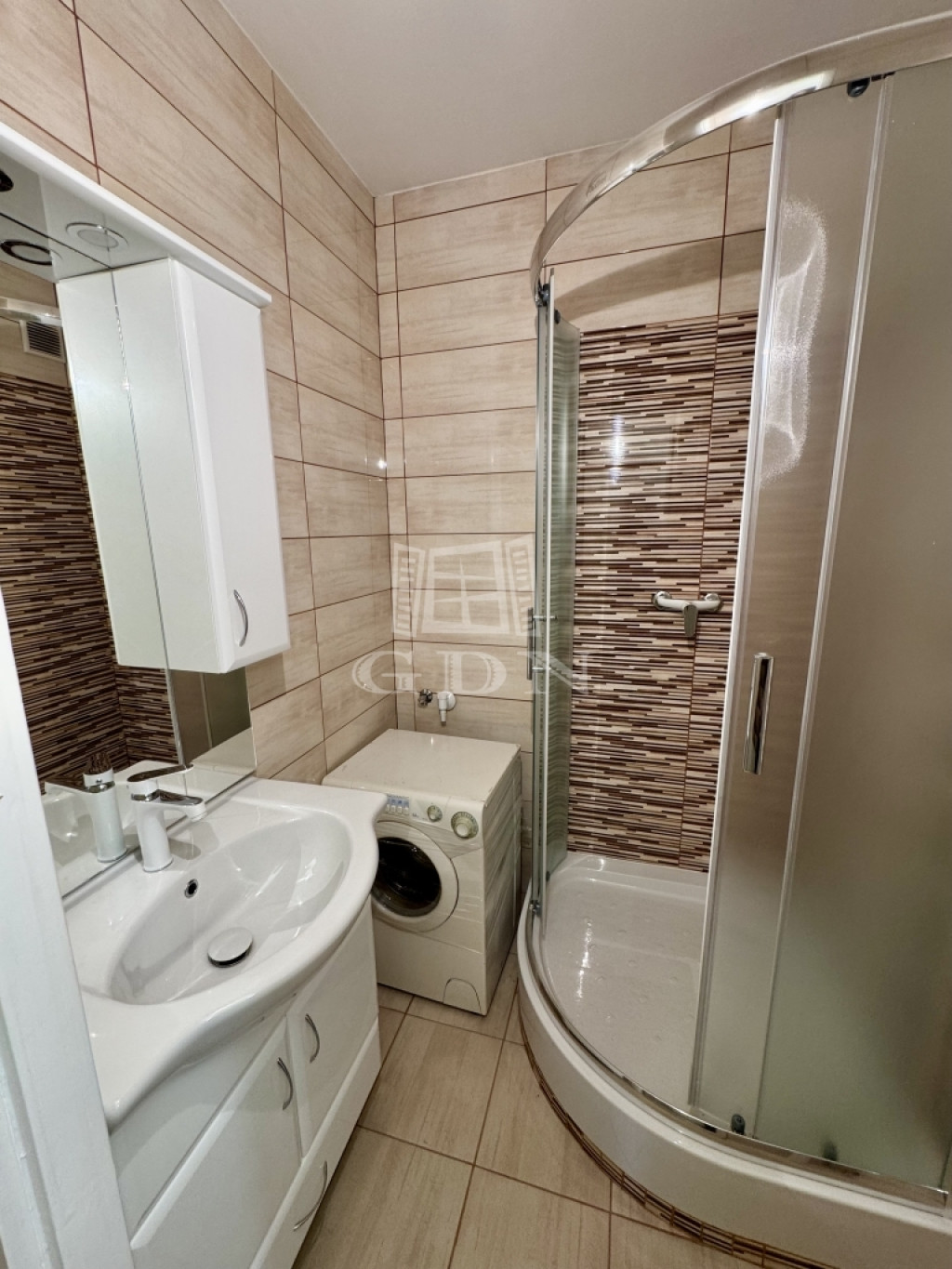Modern elrendezés: tágas, 21 nm-es nappali, külön és közös bejárattal rendelkező, 12 nm-es háló, világos, ablakos gépesített konyha, vadonatúj fürdőszoba, külön WC, erkély (3 nm) és kényelmes közlekedő hatalmas gardróbszekrénnyel.
