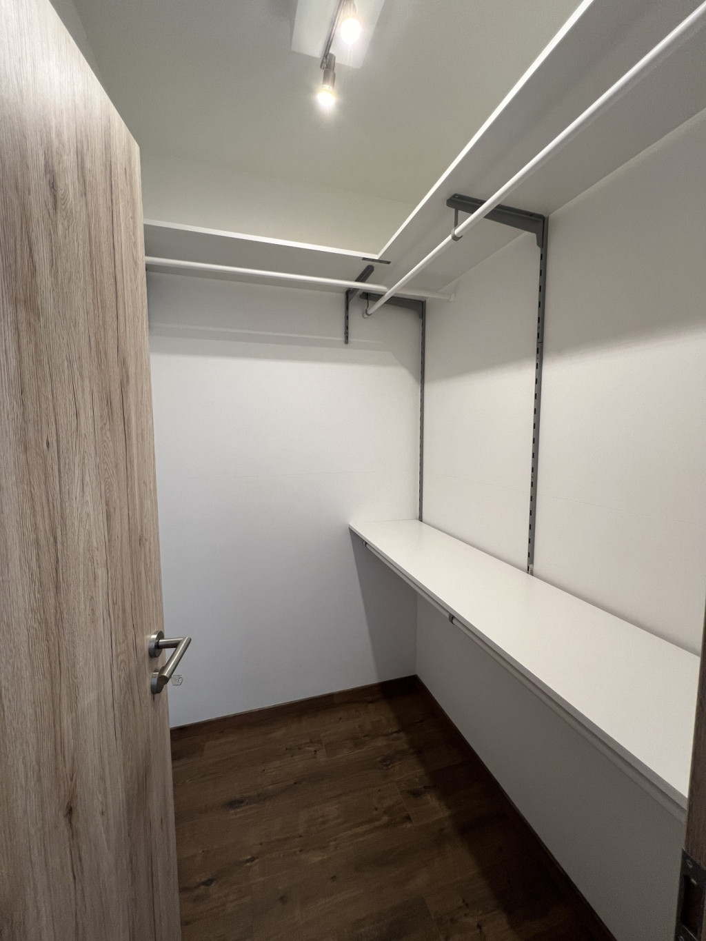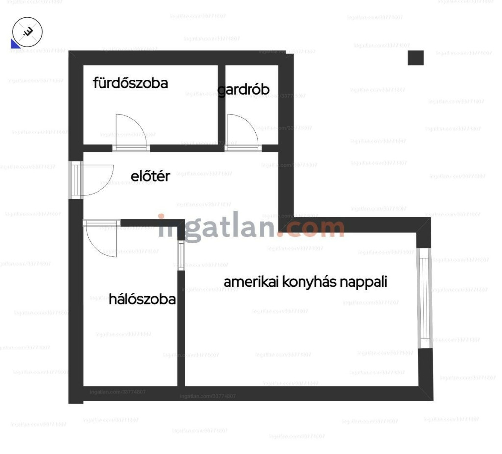 Elosztása: amerikai konyhás nappali, hálószoba, gardróbszoba, fürdőszoba, erkély. A lakáshoz tartozik egy tároló is a földszinten.