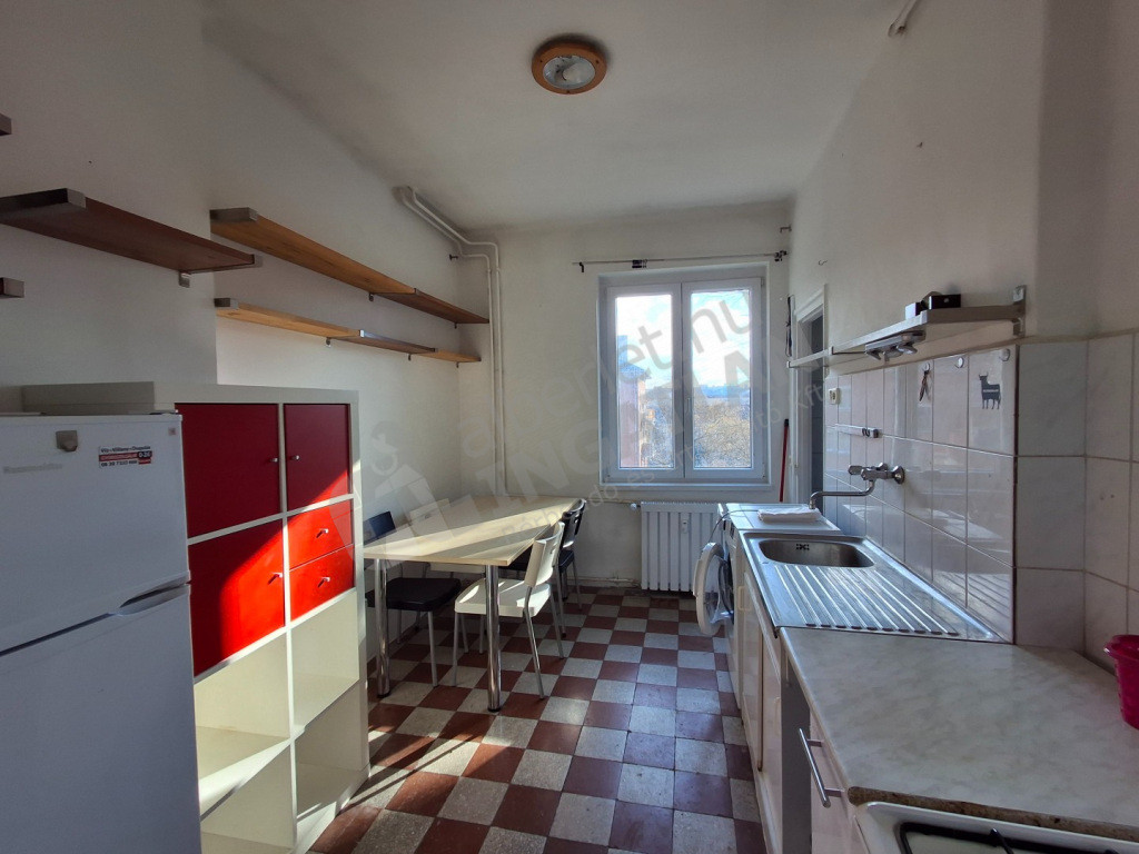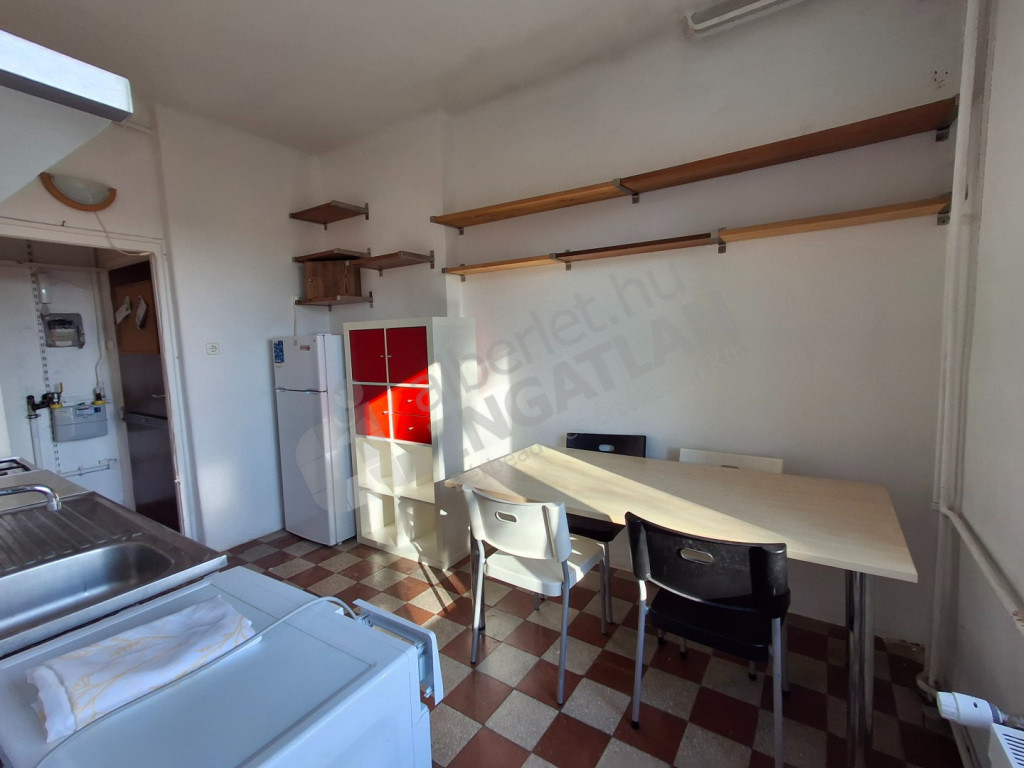 Kiváló elrendezésű garzonlakás: franciaerkélyes tágas szobával és nagy ablakos konyhával rendelkezik, a zuhanyzós fürdőszoba innen nyílik, a wc pedig külön helyiségben kapott helyet, sok pakolási lehetőség van a lakás kis mérete ellenére. Részben bútorozva, gépesítve kerül kiadásra (szekrények, asztal, székek, mosógép, hűtő, gáztűzhely). A szobában a parketta a kiadás előtt még felújításra kerül.