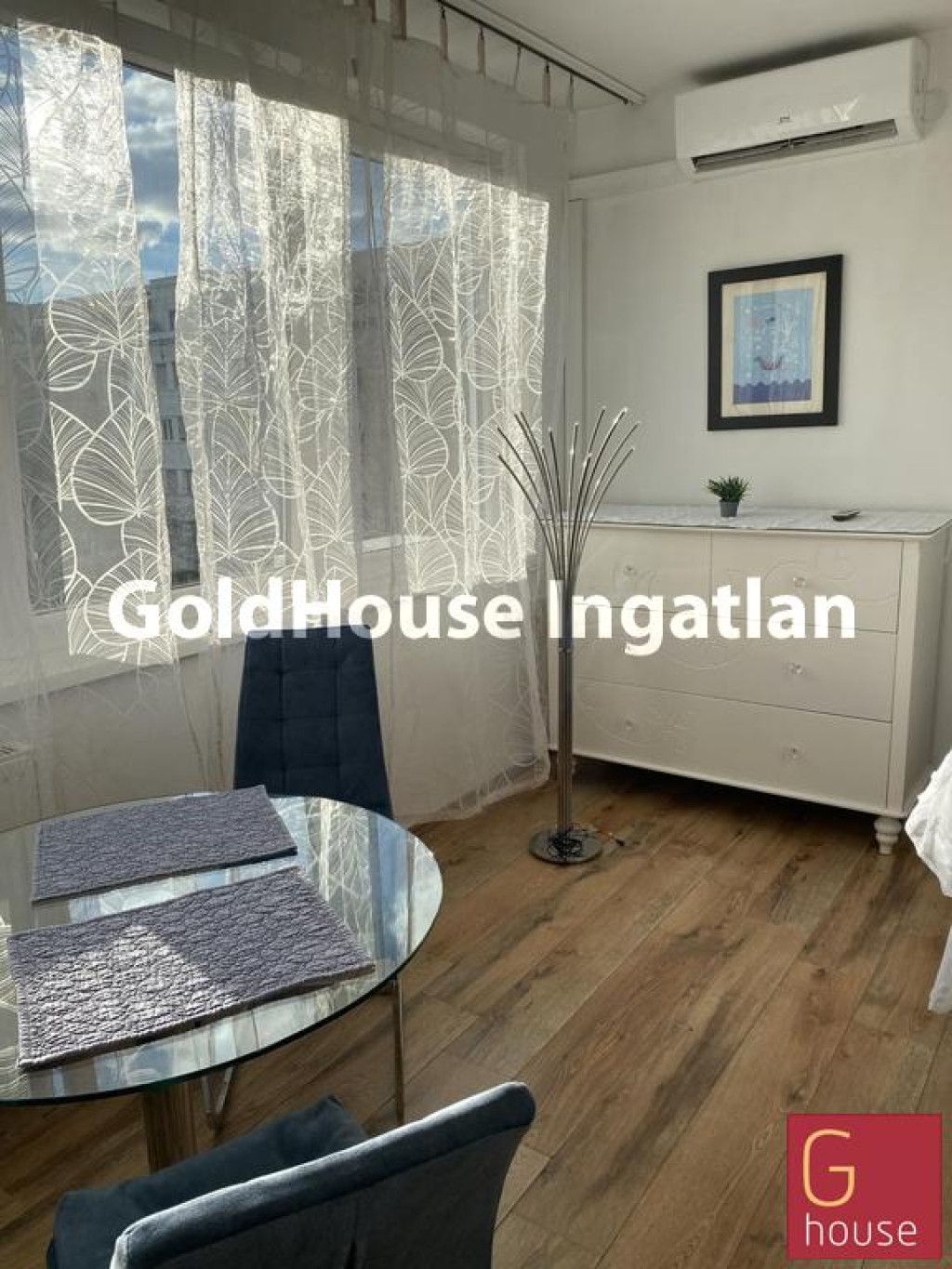 Műanyag nyílászárók, nagyon szép burkolatok, igényes bútorok vannak bent. A szoba déli fekvésű, légkondis, három nagy ablakának köszönhetően világos. A kádas fürdőszoba és a toalett külön helyezkedik el. Berendezés: ágy, TV, szekrény, komód, asztal, székek, a konyhában gáztűzhely, konyhabútor, hűtő, edények, mosógép, és egyéb kisebb szobabútorok, kiegészítők.