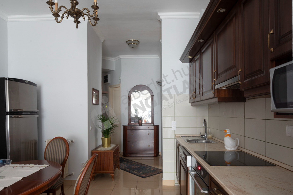 - Gépesített konyhal (sütő, főzőlap, fagyasztós hűtőszekrény, MOSOGATÓGÉP és kivezetett elszívó)
