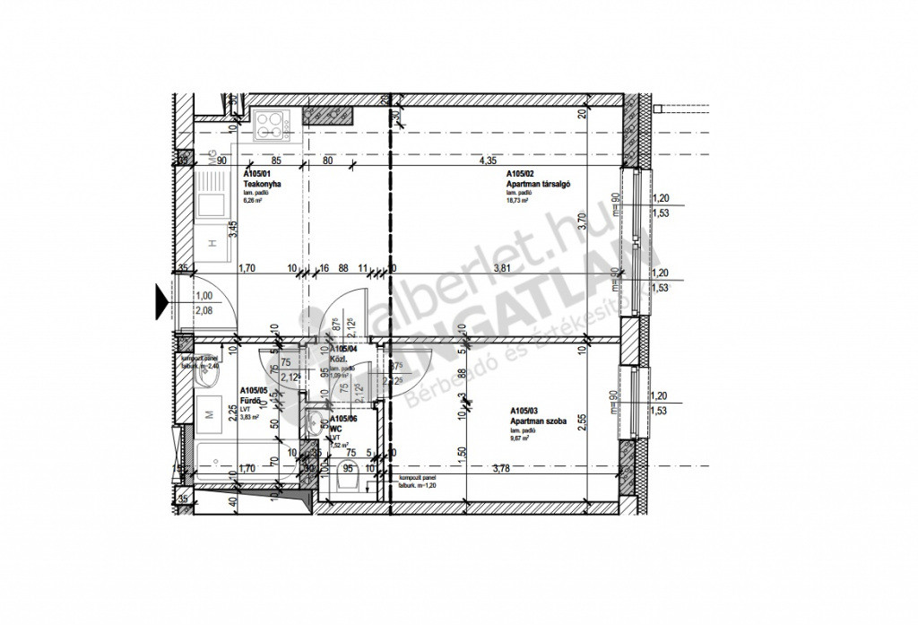 A 43 nm alapterületű ingatlan kialakítása átgondolt, terei világosak és harmonikusak, így valódi nyugalmat és kényelmet biztosít a mindennapokban.