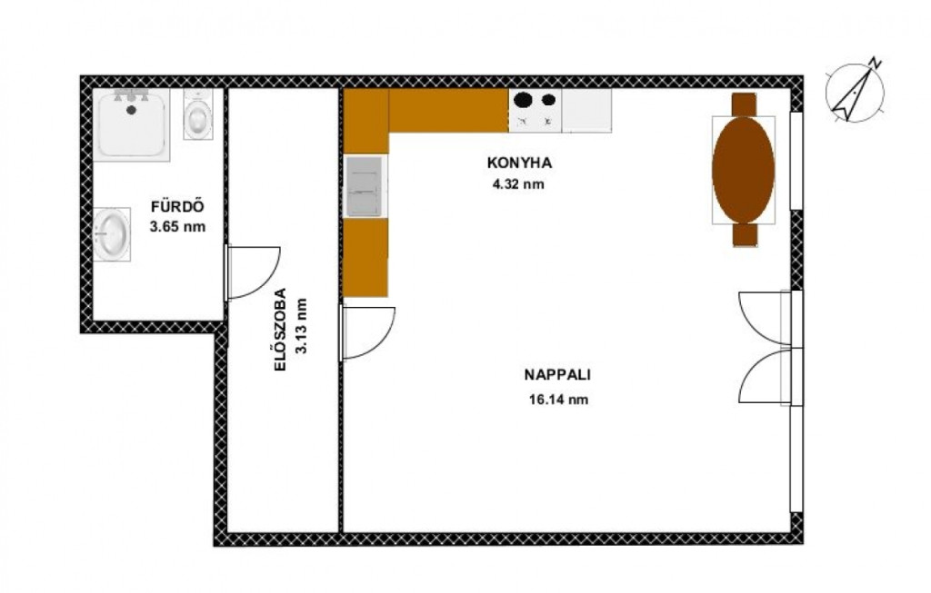 A lakás 1 szobából, konyhából, zuhanyzós fürdőszobából, (két nagy beépített szekrény) áll.