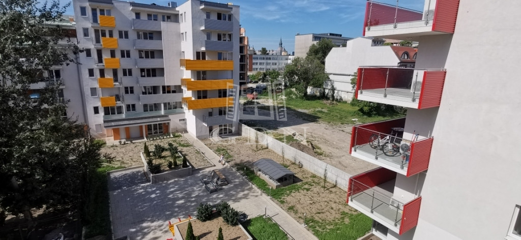 XIII.kerület, Szabolcs utca dinamikusan fejlődő részén, egy liftes, 4. emeleti, 29 nm-es ( 5 nm erkély), 1 szobás, gépesített, új építésű házban kiadó.