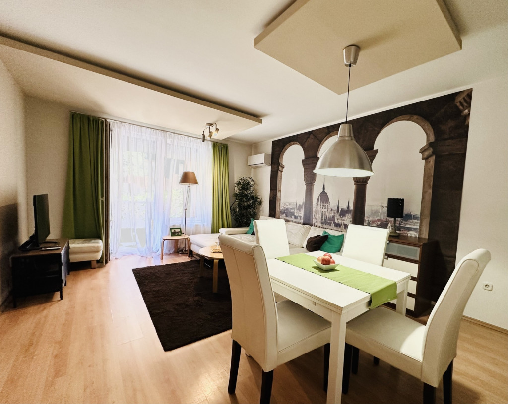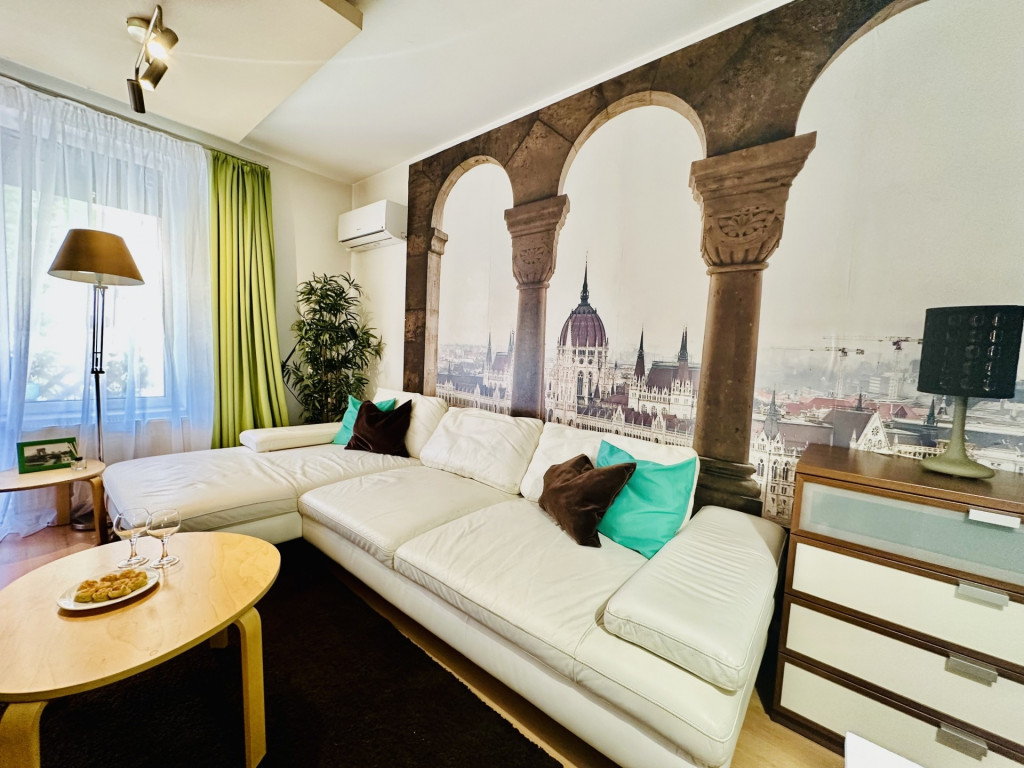 A lakás CSENDES, a belső kertre néz, TELJESEN BÚTOROZOTT ÉS GÉPESÍTETT, KLÍMÁS, modern berendezéssel. Tartozik hozzá SAJÁT TÁROLÓ, a házban PORTASZOLGÁLAT működik.