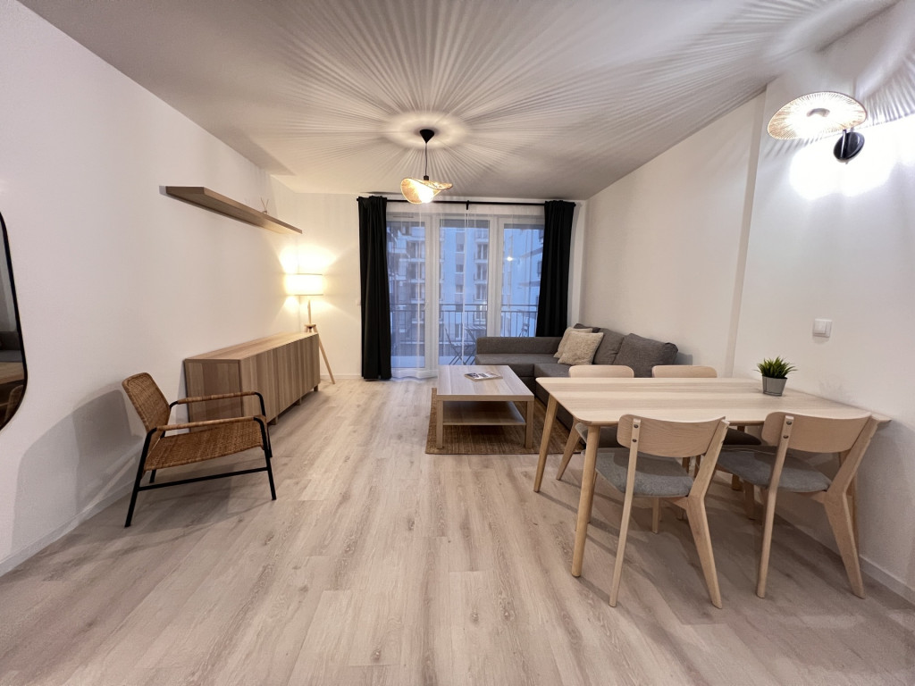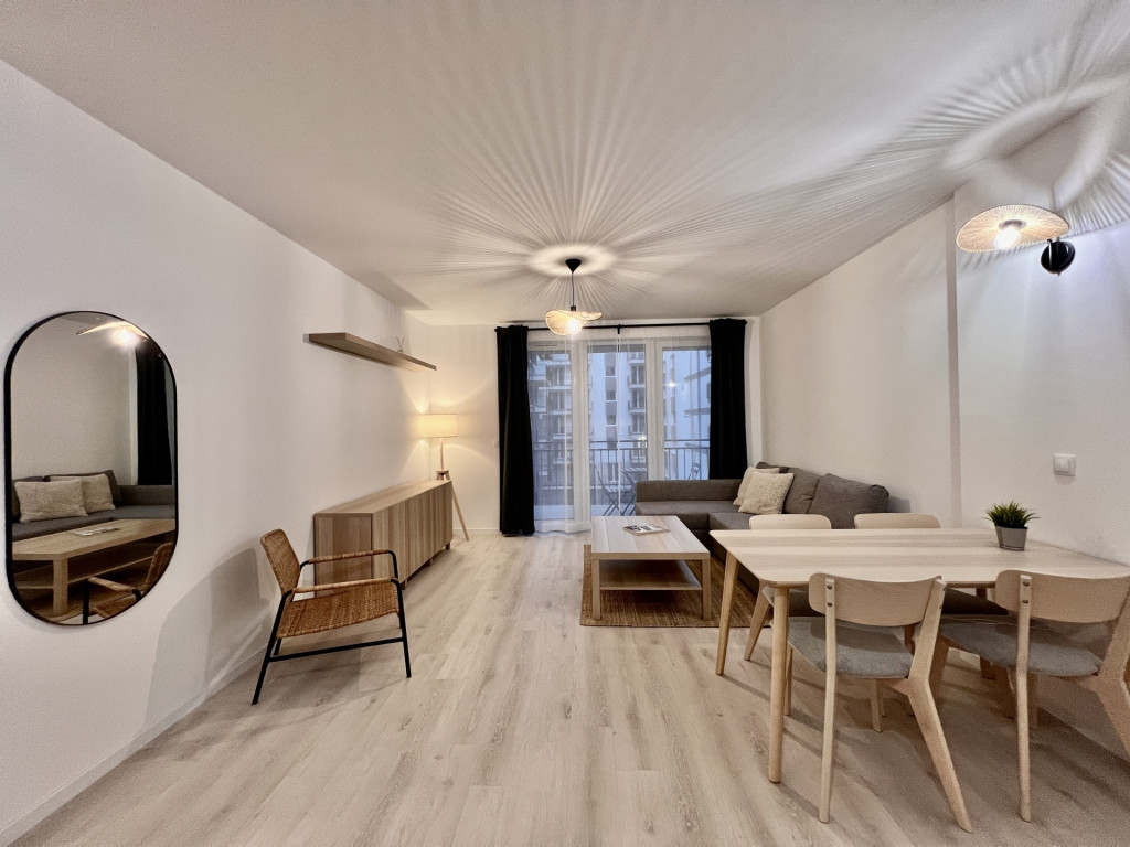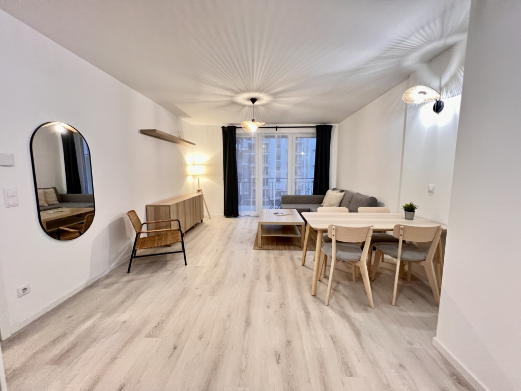 A XIII. kerület frekventált részén, a Szabolcs utcában, közel a Dózsa György úti metró megállóhoz, de mégis csendes utcában, egy VADONATÚJ ParkWest 3 társasház 3. emeletén kiadó ez a LAKBERENDEZŐ ÁLTAL KIALAKÍTOTT, amerikai konyha- nappalis, 1 hálószobás, ERKÉLYES lakás.