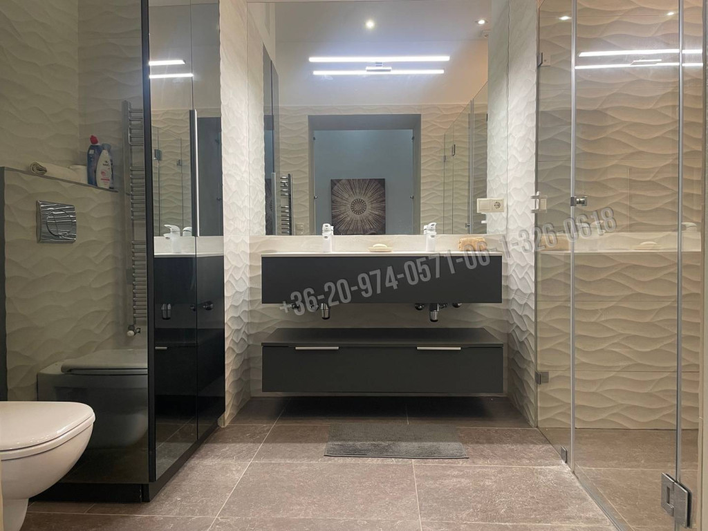 Napfényes amerikai konyhás nappali étkezővel és panorámás erkéllyel, 2 külön nyíló hálószoba, 2 fürdőszoba (egyik fürdő kádas és zuhanyzós, másik fürdő zuhanyzós és wc-s), tágas előtér és vendégmosdó helyiségekből áll. Luxus színvonalon, teljes körűen, belsőépítész tervei szerint felújított. Modern bútorokkal berendezett és prémium minőségű konyhai gépekkel felszerelt, klímás. Az ablakokon elektromos redőnyök, a nappaliban kandalló is található. Kisállat nem hozható.
