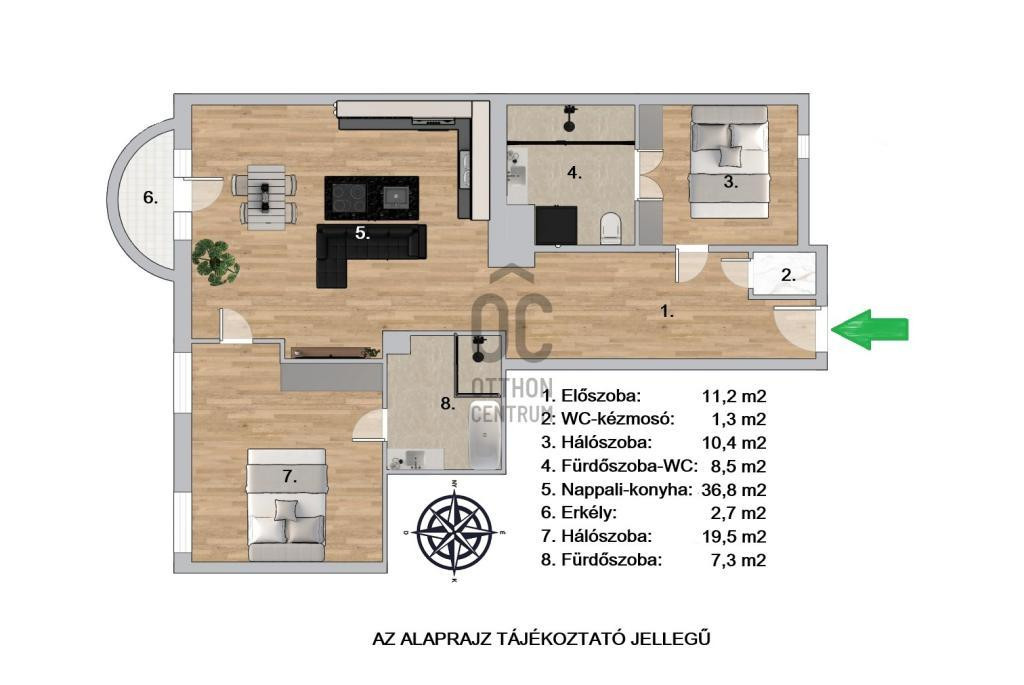 - 4. emeleti, nappali + 2 hálószobával, 2 fürdőszobával és erkéllyel rendelkező ingatlan.