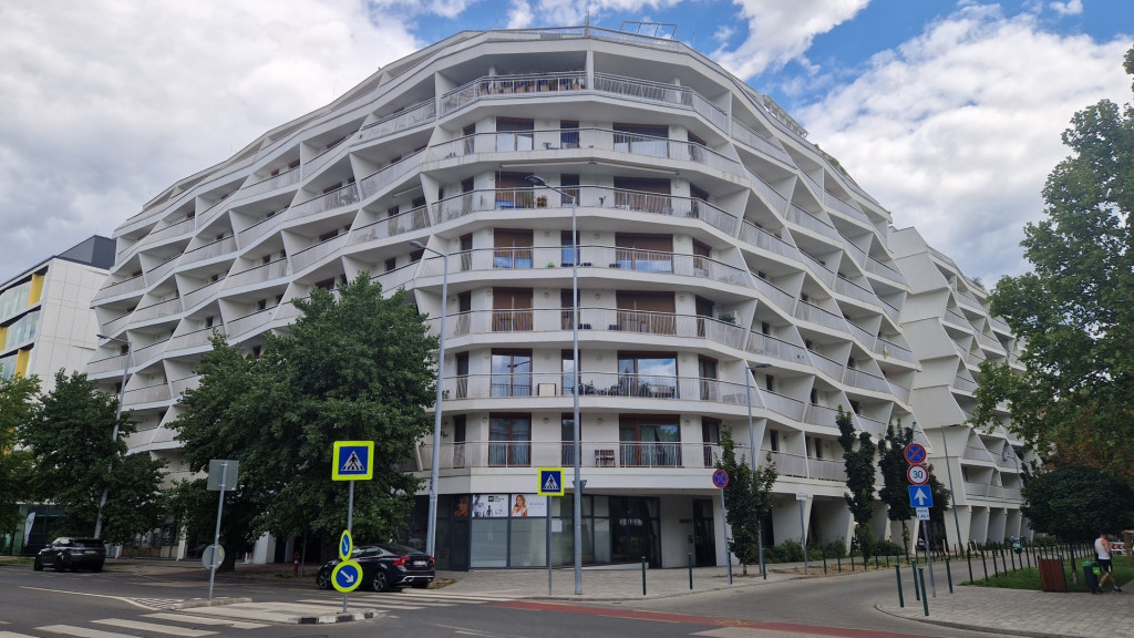 A XIII. kerületben, a TAKSONY UTCÁBAN, a modern GREEN COURT I. társasház 6. emeletén kiadó egy 50 m²-ES, AMERIKAI KONYHÁS NAPPALI + 1 HÁLÓSZOBÁS, belső kertre néző, ERKÉLYES lakás.