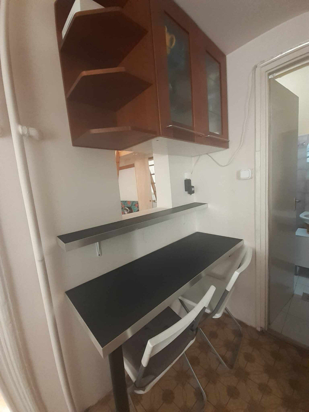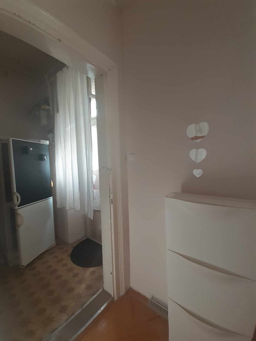Kiadó a Váci úton egy lift nélküli, felújítás előtt álló lépcsőházzal rendelkező társasházban egy első emeleti, berendezett, egyszobás lakás. Az ingatlan 28 négyzetméter, a szoba galériázott (fekvő galéria, matrac van).