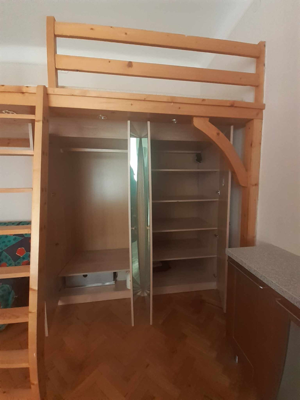 Kiadó a Váci úton egy lift nélküli, felújítás előtt álló lépcsőházzal rendelkező társasházban egy első emeleti, berendezett, egyszobás lakás. Az ingatlan 28 négyzetméter, a szoba galériázott (fekvő galéria, matrac van).