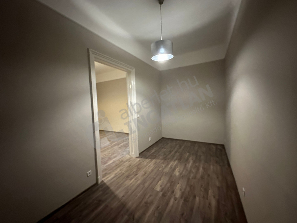 2. emeleti, napos, K-i, D-Ny-i tájolású, a két nagyszoba a Nyugati parkolójára néz, a kisebb a csendes belső udvarra. Felújított, külön WC, külön zuhanyzós fürdőszoba, külön konyha, étkező, tágas folyosó.