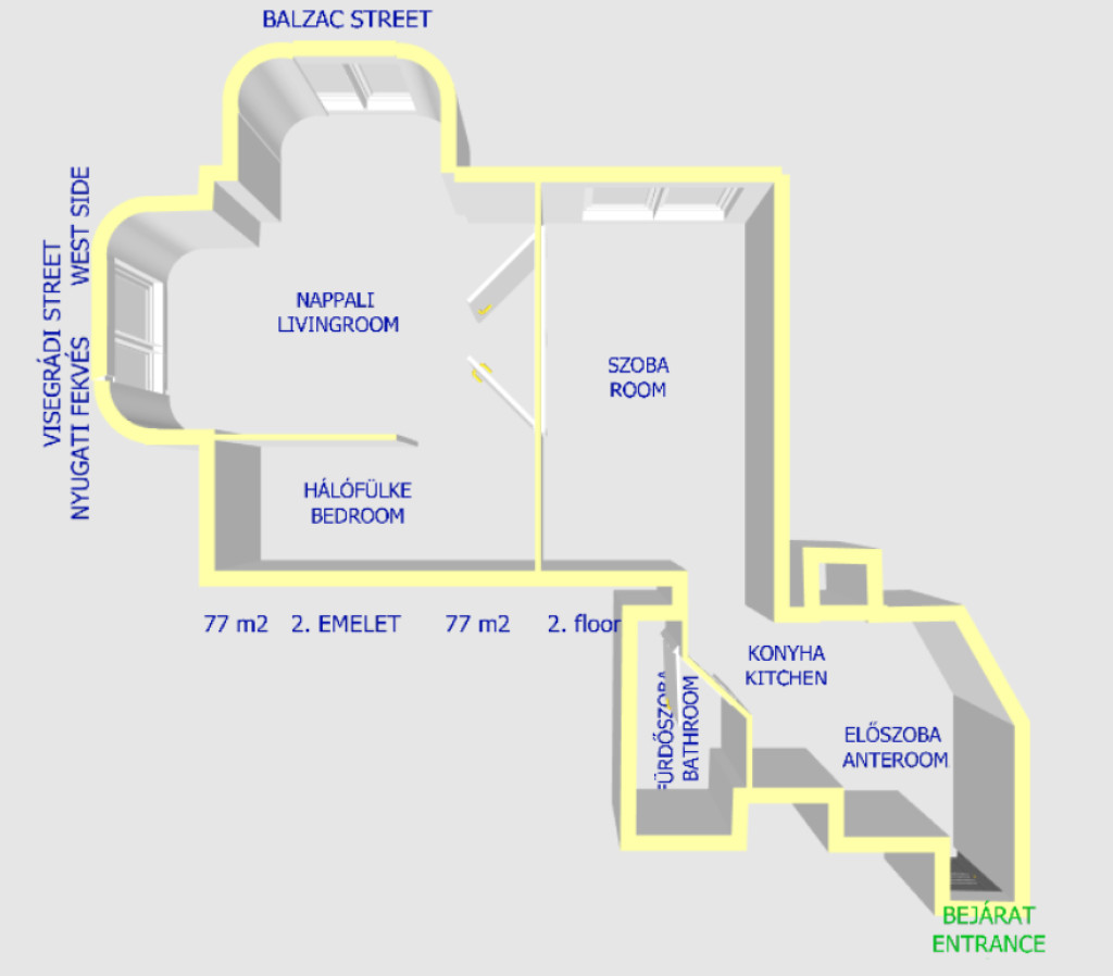 Jó egzisztenciával rendelkező egyedülállónak vagy párnak, leellenőrizhető vállakozásnak bérbeadó Újlipótvárosban ez az egyedi hangulatú, gyönyörűen felújított, 77 m2-es, 2. emeleti lakás a Visegrádi utcában igényes társasházban