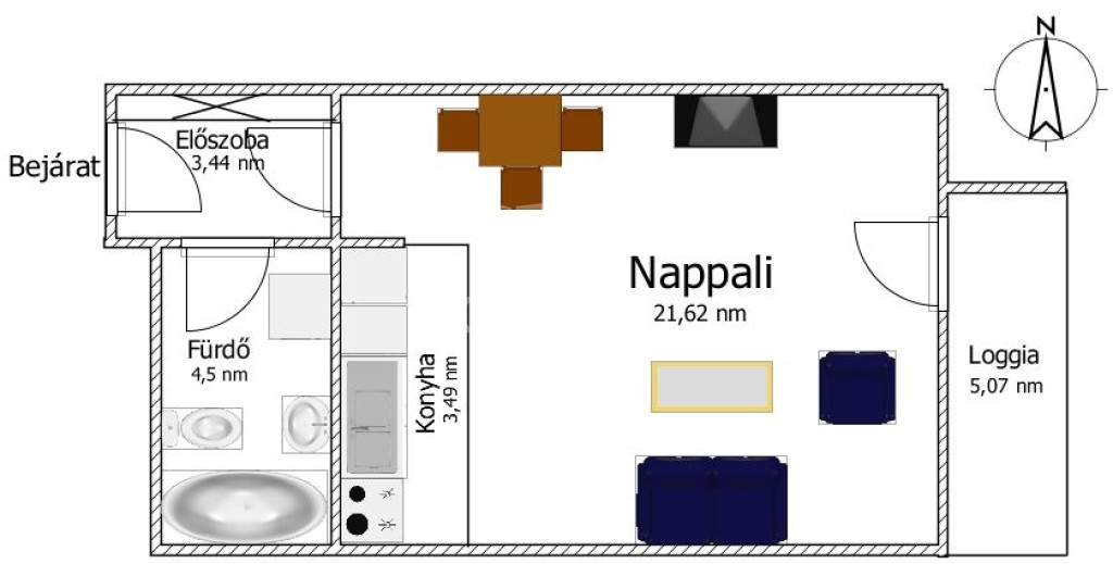 - 1 szobás, amerikai konyhával