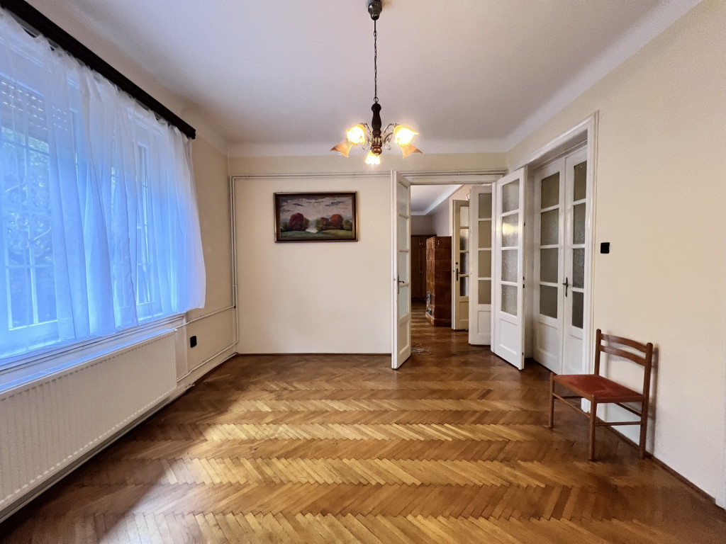 ELOSZTÁS: előszoba / hall, 1. szoba kandallóval, 2. szoba, kádas fürdő (előszobából és a 2. szobából is megközelíthető), külön wc, konyha-étkező, innen nyíló 3. szoba (félszoba), tároló