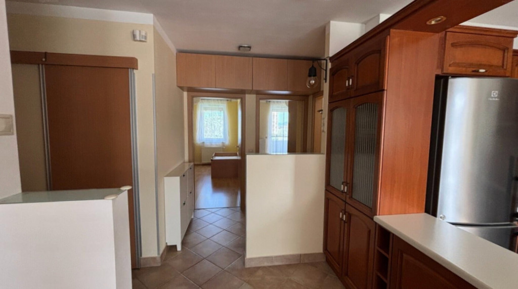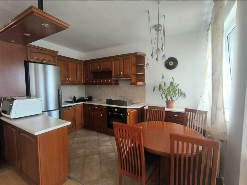 A lakás részben bútorozott, gépesített konyhával (mosógép, sütő, főzőlap, szagelszívó, mosogatógép, hűtőszekrény).