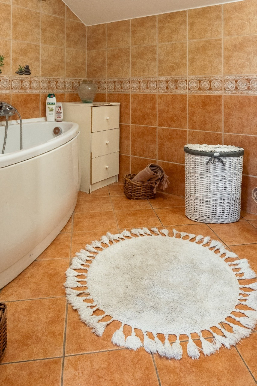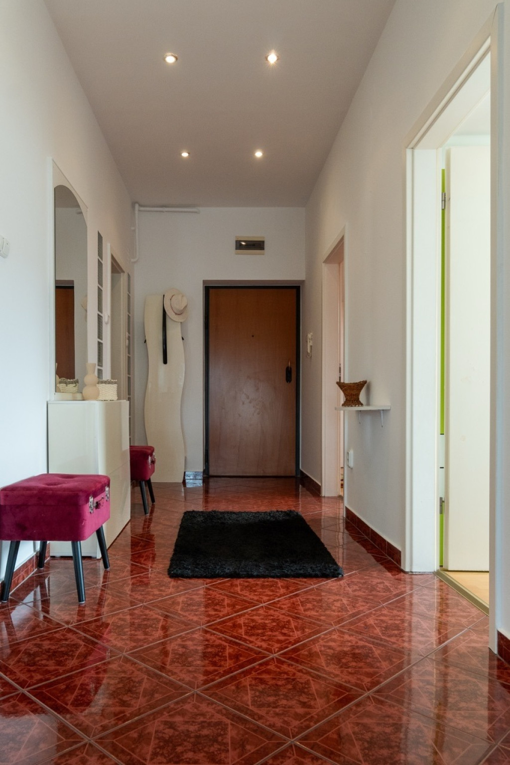 Egy nappali konyhával együtt és 2 hálószoba lett berendezve (az egyik beépített szekrénnyel), a kádas fürdőszobán kívül még egy külön WC kézmosóval, mosógéppel is található.