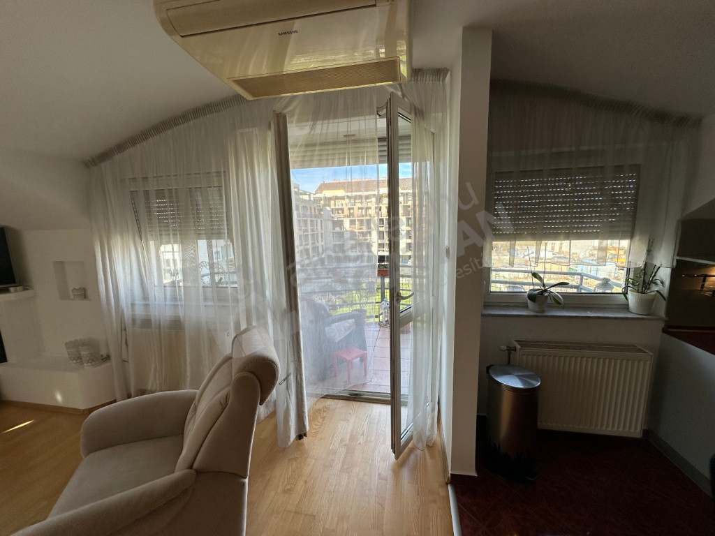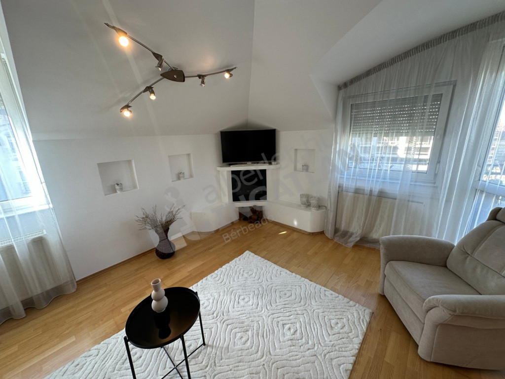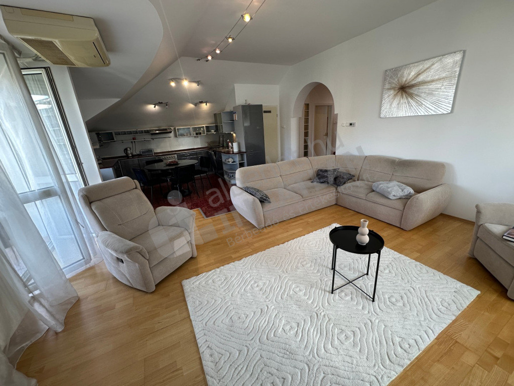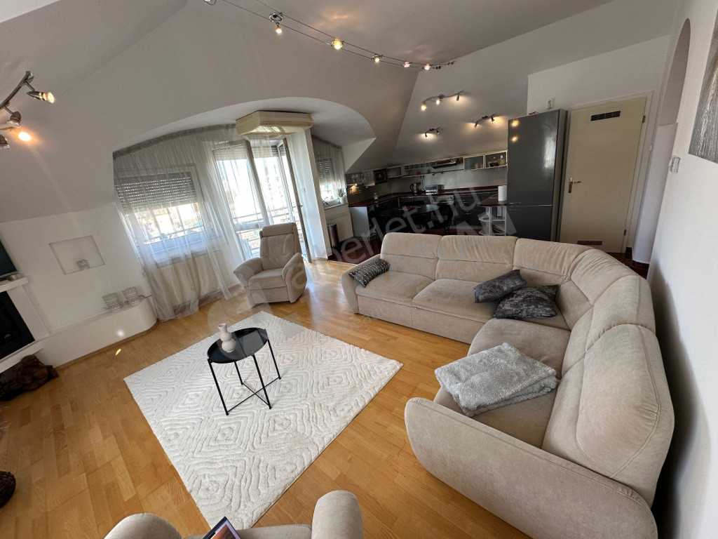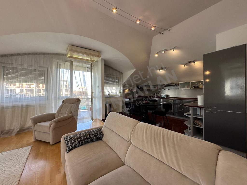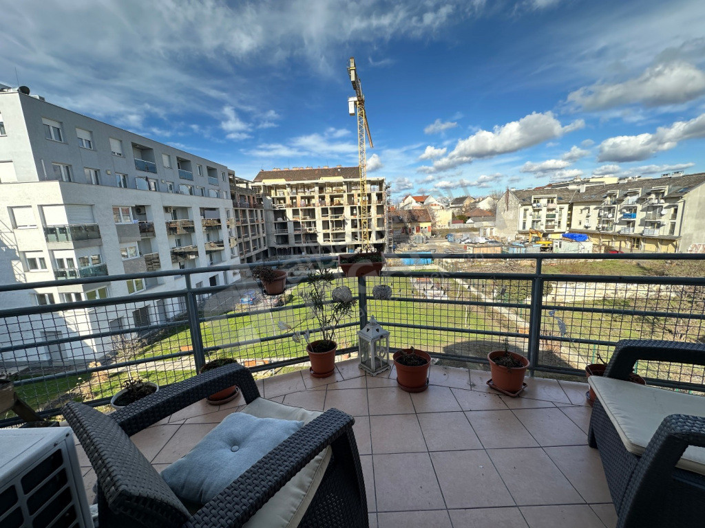 Két hálószoba, tágas nappali konyhával, két fürdőszoba, külön WC, tárolóhelyiség, 6m2-es terasz.