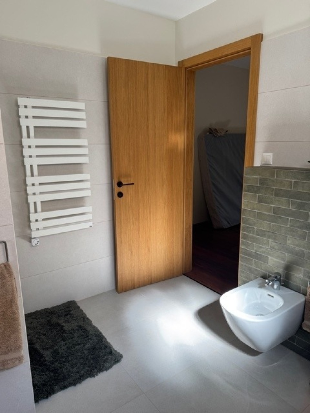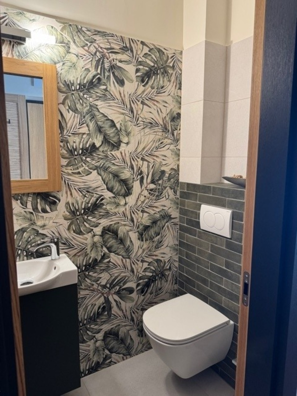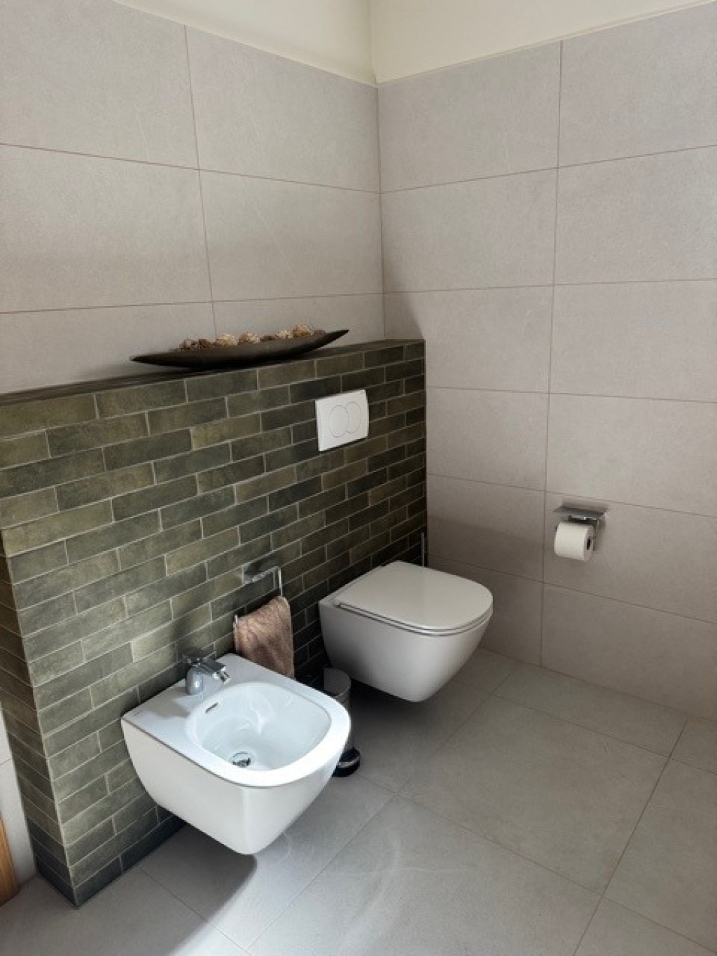 2 fürdőszoba (kádas, zuhanyzós WC-vel, törülközőszárítós radiátorral) és egy vendég WC került kialakításra, az egyik fürdő hálószobából nyílik.