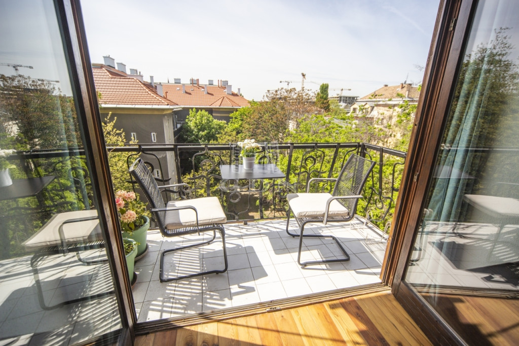 A bérbeadásra kínált bruttó 81 négyzetméteres ingatlan az impozáns Ilka utcában, egy dekoratív nagypolgári stílusú épületben helyezkedik el. A lakásban lakó a tágas erkélyről (Budai hegység, számos ismert épület) és a tető téri ablakokból egyaránt a négy égtáj bármelyike felé kivételes városi panorámában gyönyörködhet.