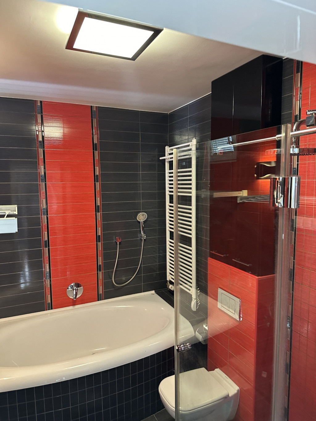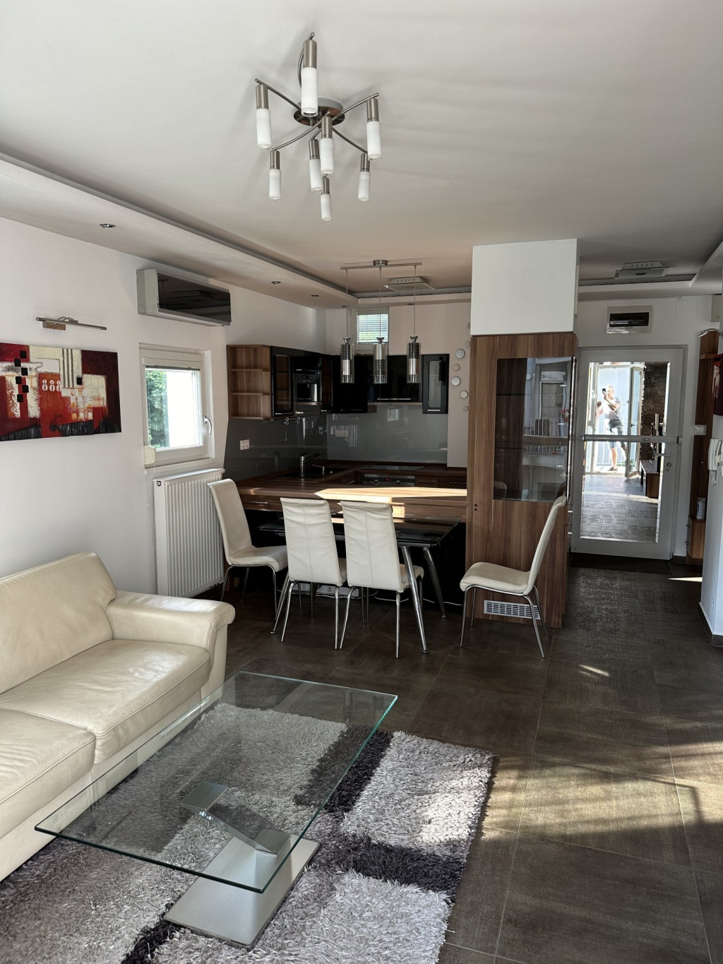 A lakás elosztása kiváló, minden helyisége ablakos és KLÍMÁVAL felszerelt. Az amerikai konyhás nappali és a hálószoba is igényesen bútorozott, a kényelmet pedig olyan extrák szolgálják, mint a BORHŰTŐ, a mosogatógép, vagy a fürdőszobában található tágas, kétszemélyes kád és zuhanyzó. A biztonságról riasztó, több ponton záródó biztonsági ajtó és PROGRAMOZHATÓ MOTOROS REDŐNYÖK gondoskodnak. A lakáshoz tartozik egy hangulatos terasz is, amely manuális napellenzővel teljesen priváttá tehető.