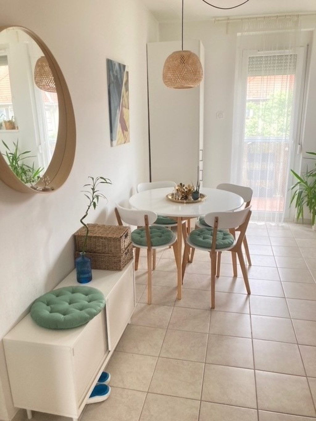 A lakás teljes körűen gépesített, riasztóval felszerelt, a fűtést cirko és invertzeres klíma egyaránt biztosítják.