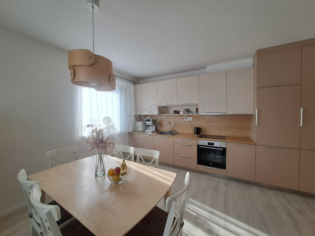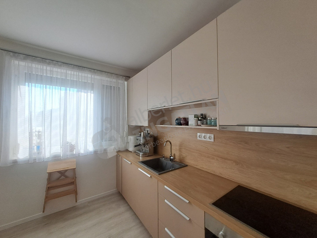 A lakás teljesen berendezett és gépesített, így azonnal költözhető. A konyha felszerelt a mindennapi élethez szükséges gépekkel. A lakás rendkívül világos, nagy ablakai a közös, gondozott kertre néznek, ami kellemes, nyugodt hangulatot biztosít.