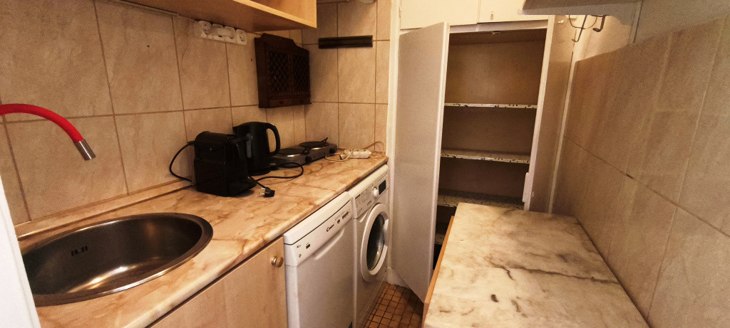 A lakás részben bútorozott a képeken látható állapot szerint. A konyha teljesen gépesített, mosógép, mosogatógép, hűtőszekrény, kávéfőző, vízmelegítő megtalálható. Hagyományos tűzhely nincs, elektromos főzőlap, illetve minigrill van helyette.
