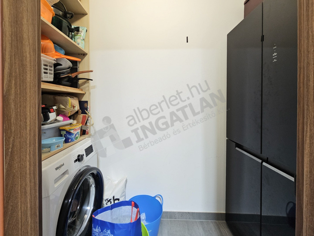 In the 16th district, in a quiet side street (Iskola utca), in a newly built suburban environment, a 100 m² apartment with its own 100 m² garden and yard is for long-term rent.