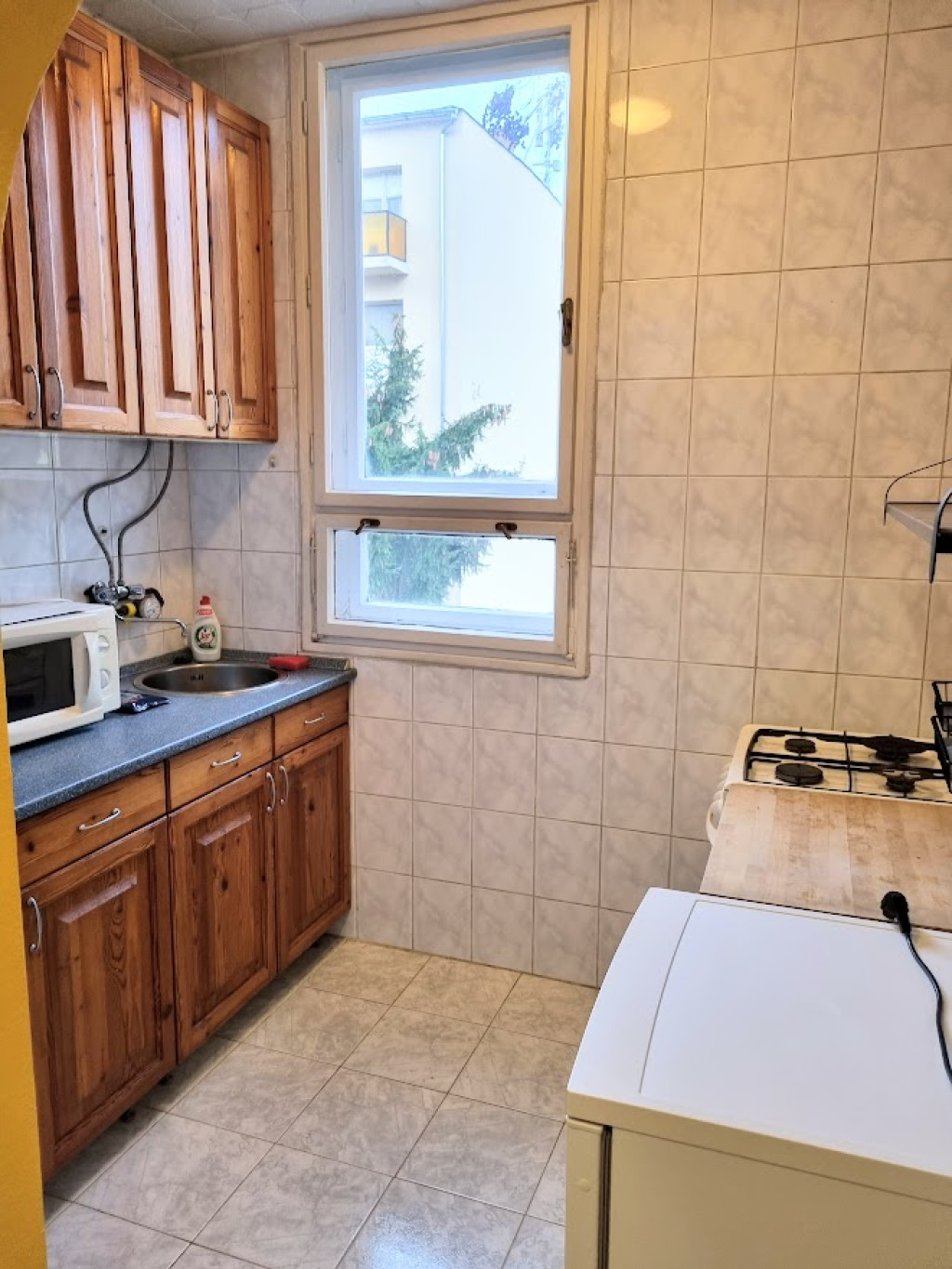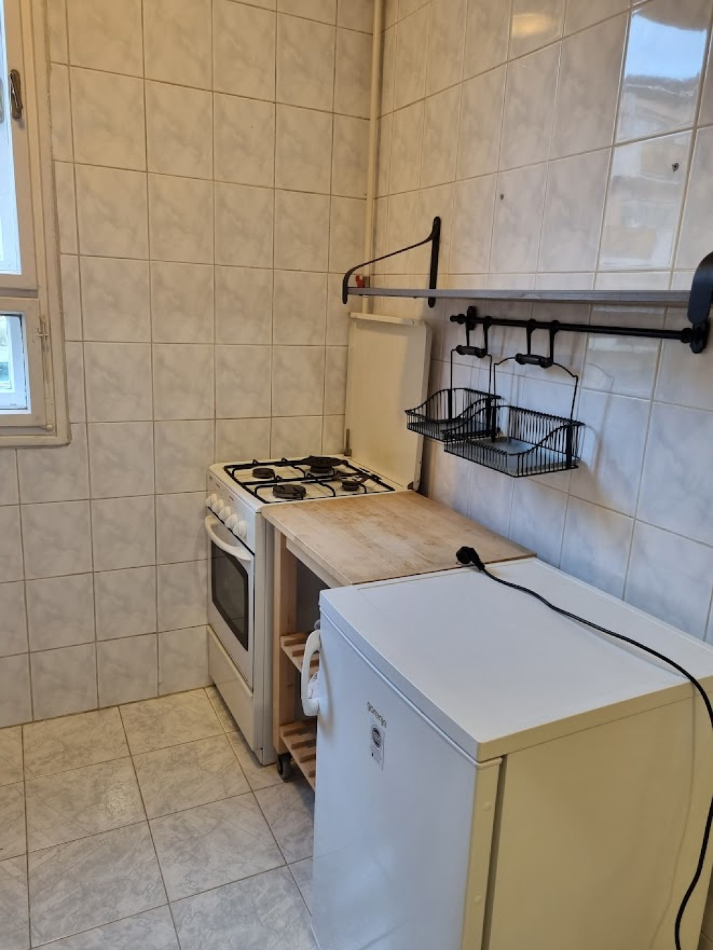A HÉV vonala mellett kiadó egy első emeleti, 33 négyzetméteres, bútorozott és gépesített lakás.