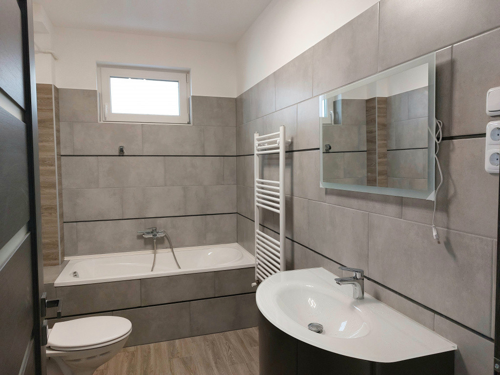 -Elosztás: amerikai konyhás nappali, 2 hálószoba, kádas fürdőszoba WC-vel, közlekedő