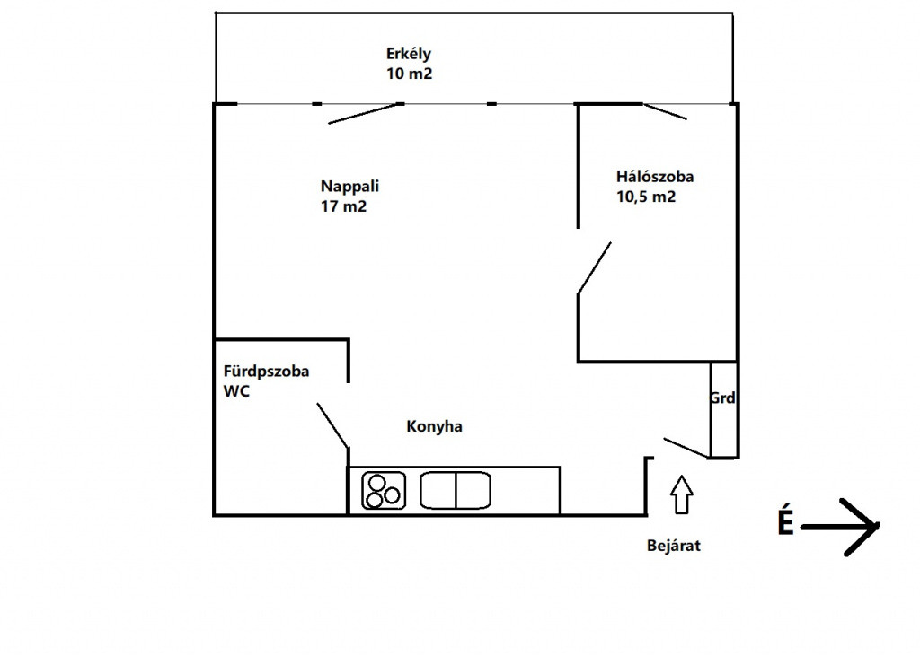 Az előszobában polcos és akasztós rekeszekkel rendelkező gardróbszekrény található, és néhány kisebb bútorelem, amelyek a képeken is látszódnak. Ágy és nappaliba való ülőgarnitúra nincs a lakásban.
