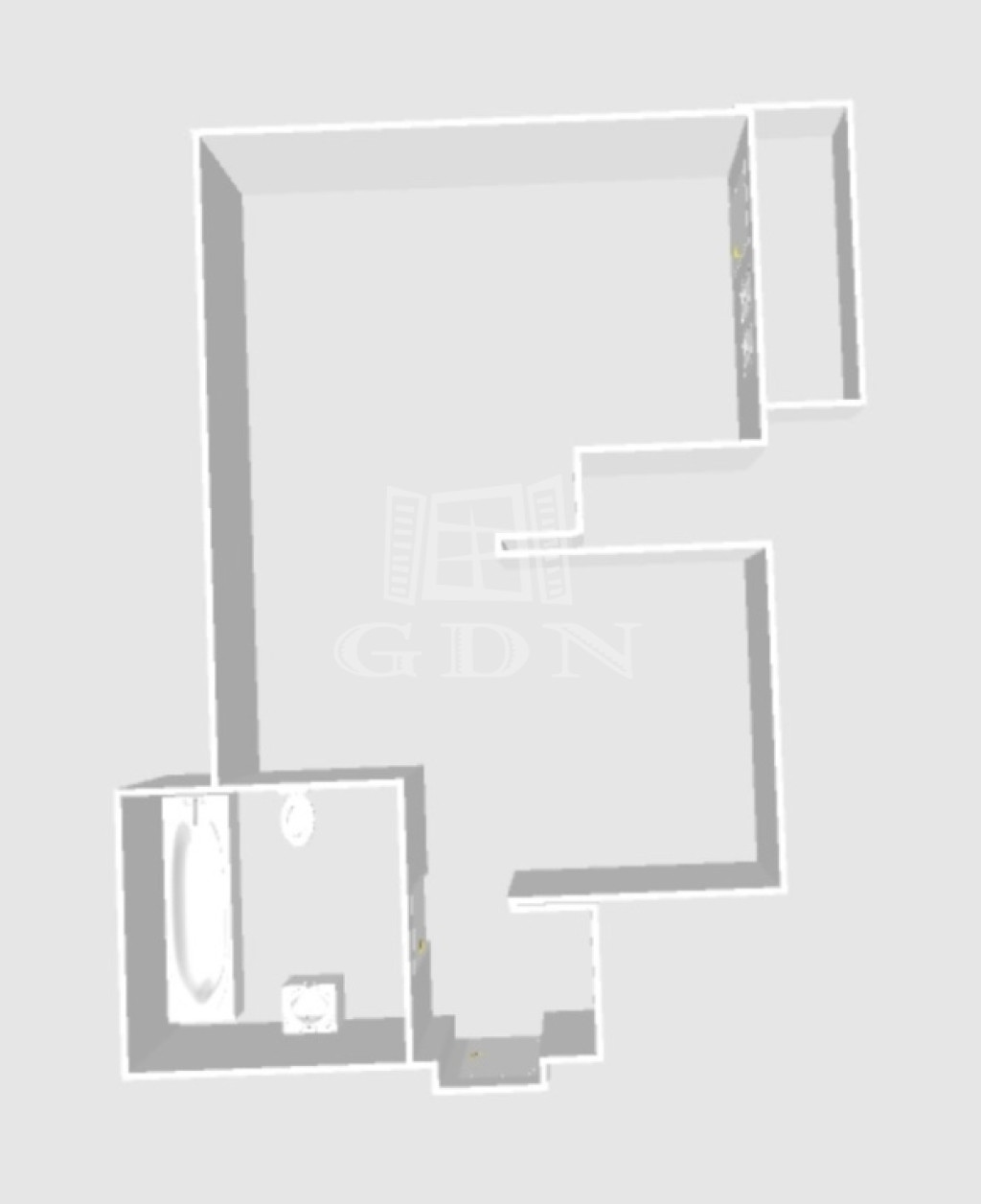 A lakás előszoba, fürdőszoba-WC, gardrób, konyha és nappali helyiségekből áll.