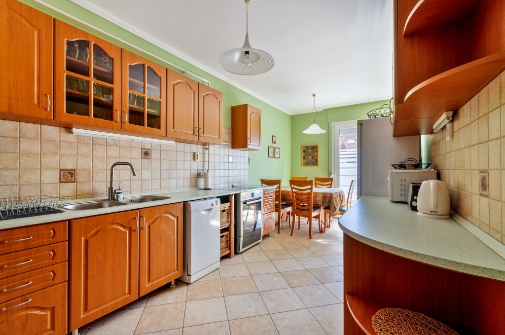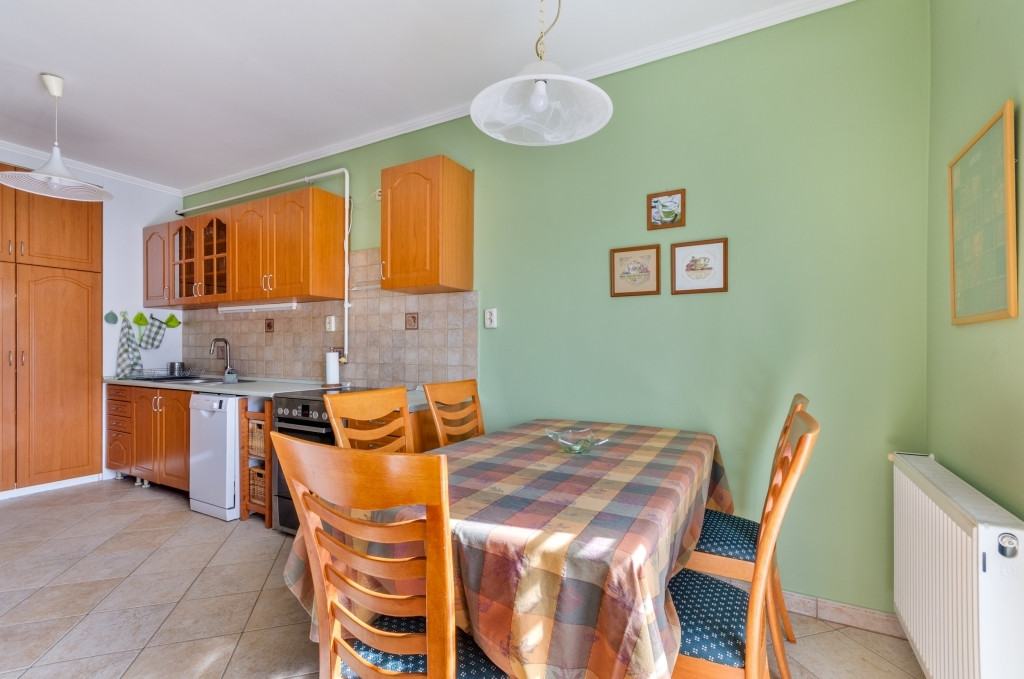 Tágas nappali, étkezős, nagy konyha, mindkettő terasz kapcsolattal,