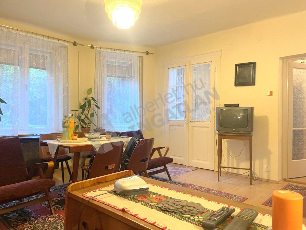 A kiadó lakás Budafok, csendes, családi házas övezetében közel a Dunához, egy kétszintes, nagy kertes, családi ház alsó szintje. Felső szinten tulajdonos lakik.