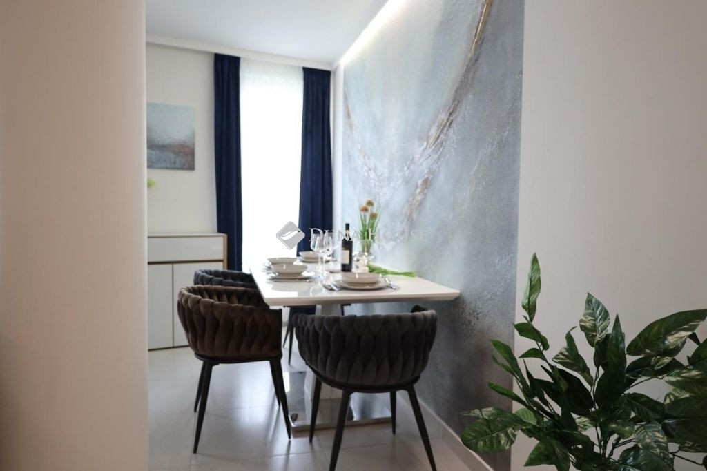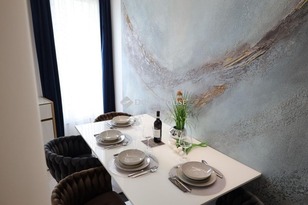 A modern műanyag nyílászárók és az elektronikus alumínium redőnyök nemcsak esztétikusak, de kiváló hő- és hangszigetelést biztosítanak, így a lakás mindig kellemes hőmérsékletű és csendes környezetet nyújt. A gyönyörű dekorfalak tovább emelik a lakás színvonalát és stílusát, egyedi hangulatot kölcsönözve az otthonnak.
