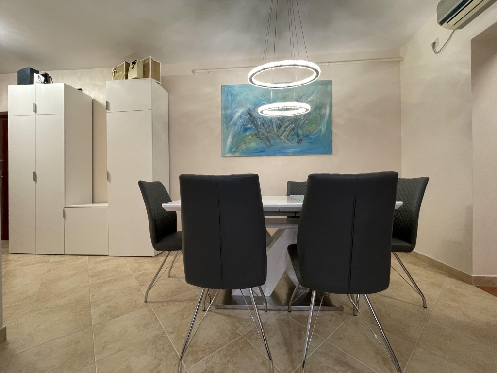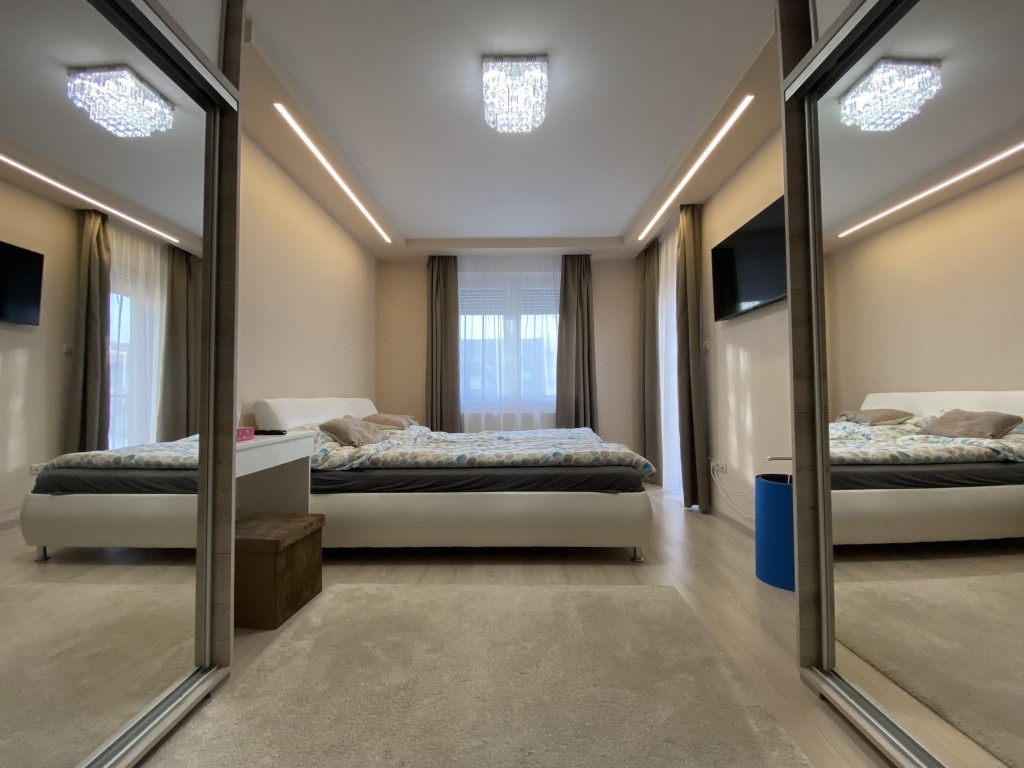 A lakás világos, napfényes, bútorozott, gépesített, mosogatógép és mosó-szárítógép is van. A szobák külön nyílnak, a nappaliban klíma van. Fürdőszoba és wc külön van. Gázcirkó fűtésű. Műanyag nyílászárók elektromos redőnnyel, szúnyoghálóval felszereltek. A közlekedőben elhelyezett hatalmas gardróbszekrény könnyíti a holmik tárolását. A közlekedőből kamra nyílik. 5 nm-es erkély tartozik hozzá. Közös költség 15.000 Ft. Dohányzás egyáltalán nem megengedett, állat nem hozható. Az épület szigetelt. A társasházhoz saját kert tartozik.