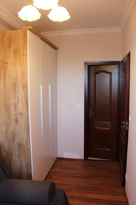 Helyiségei : előszoba + kádas fürdőszoba, wc-vel + 1 szoba + konyha, étkező, nappali.