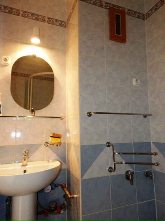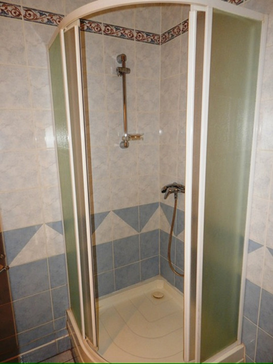 Helyiségei : előszoba, közlekedő + konyha, étkező + spájz + 2 szoba + zuhanyzós fürdőszoba + wc + kb. 3 m2-s erkély, loggia.