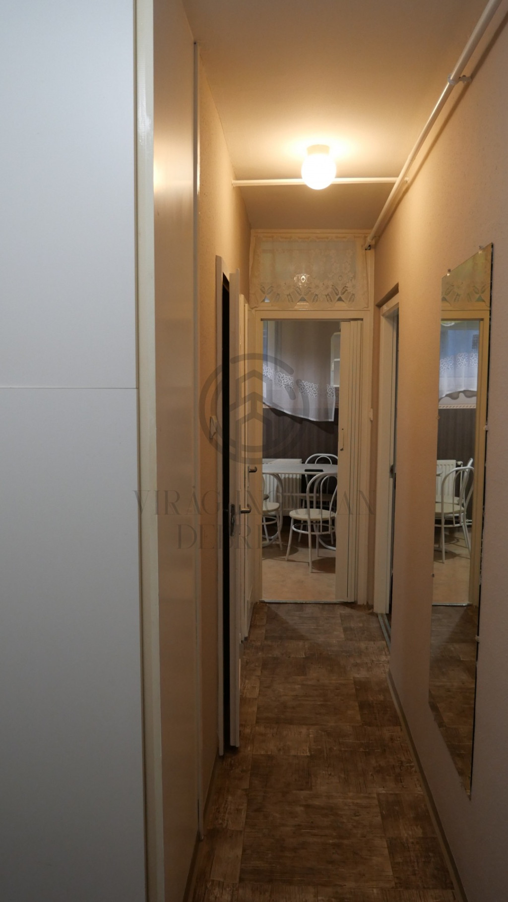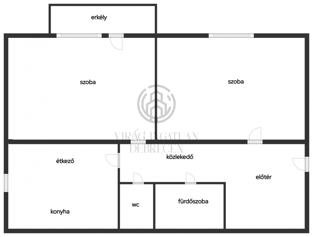 - Kettő külön nyíló szoba, fürdőszoba, WC, konyha, előszoba.