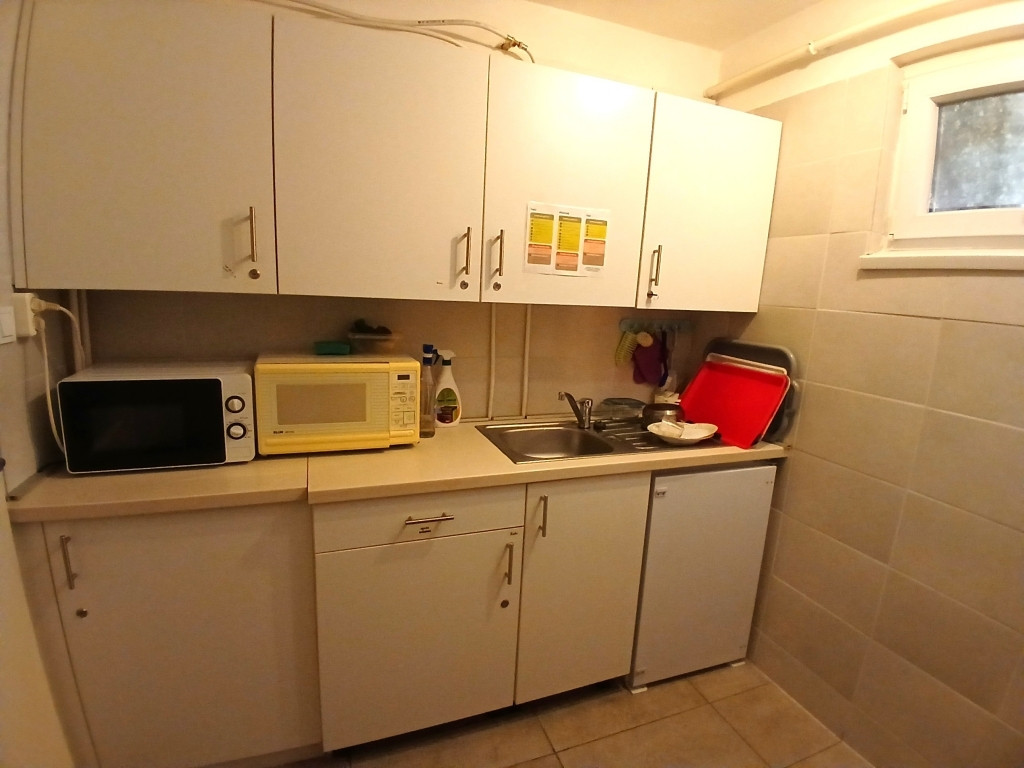 Közös konyhában saját zárható konyhaszekrény van. Mosókonyha mosógéppel és szárítógéppel külön helyiségben.