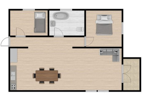 -amerikai konyhás nappali + 2 külön nyíló félszoba