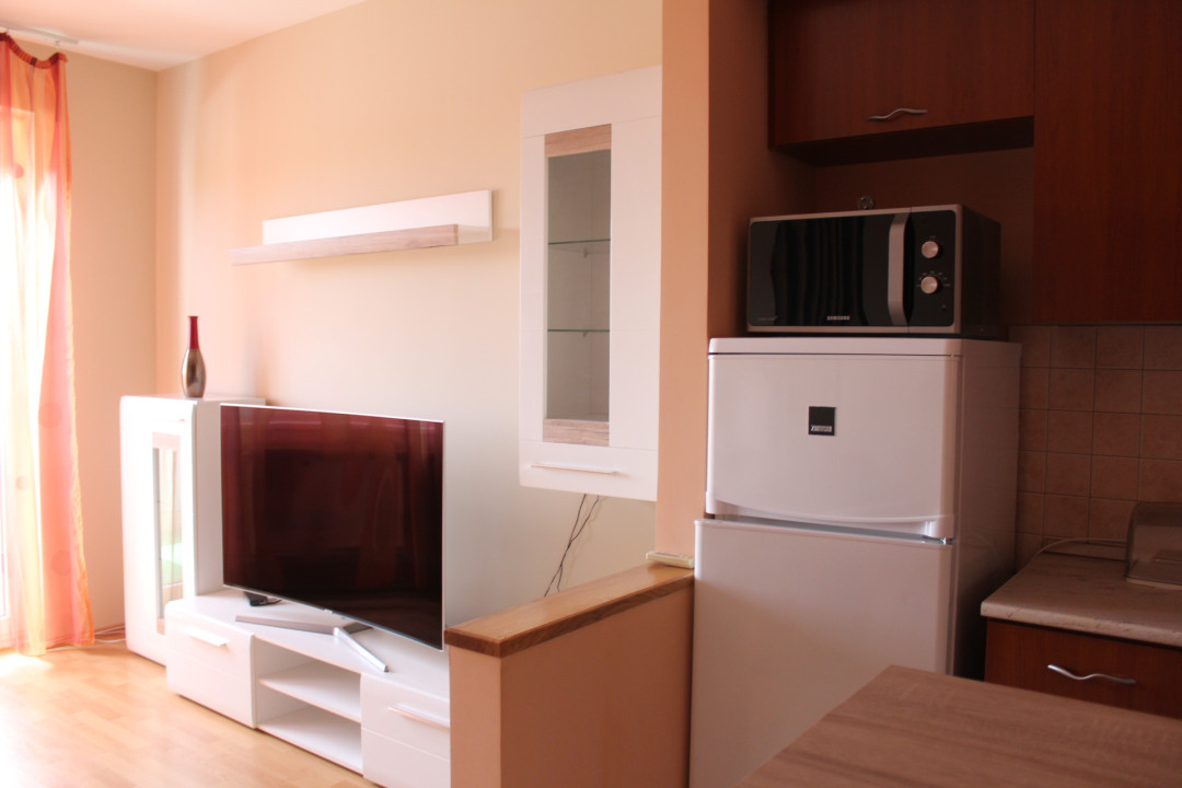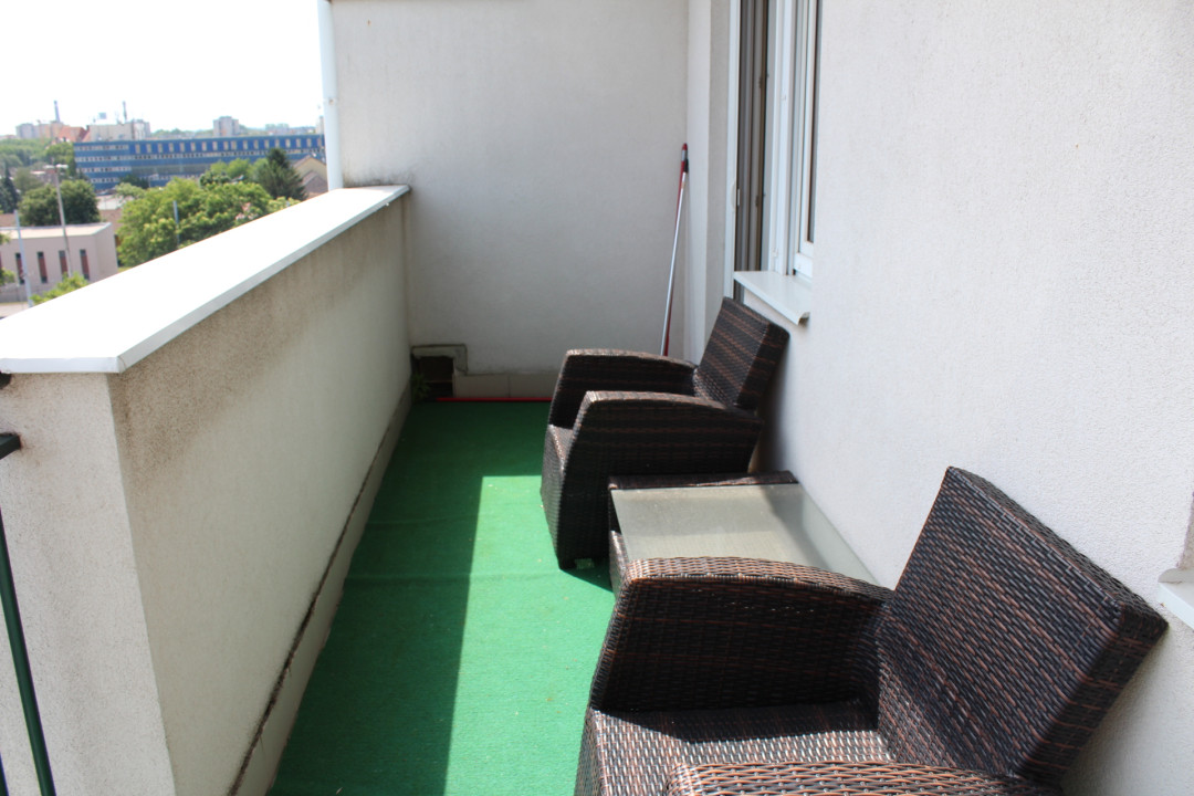 Helyiségei : előszoba + konyha, étkező, nappali + 1 hálószoba + kádas fürdőszoba + wc + kb. 10 nm-s erkély.