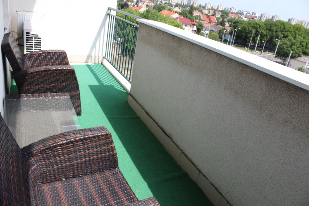 Panoráma lifttel lehet felmenni az emeltre. Fekvése Keleti.