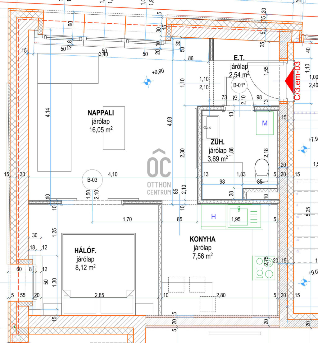 Helyiségei : nappali, konyha - étkező, szoba, fürdő + folyosó.