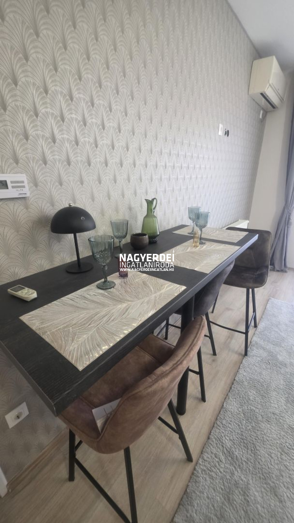 Debrecenben a Honvéd utcán, belvárostól 10 percre, villamos, buszmegállókhoz közel, csendes, új építésű társasházban kiadó egy nappali + 2 hálószobás, erkélyes, teljes körűen berendezett, felszerelt lakás. Klíma, mosogatógép van. Igény szerint garázs is elérhető. Azonnal költözhető, 2 havi kaució szükséges. Referenciaszám: #121679