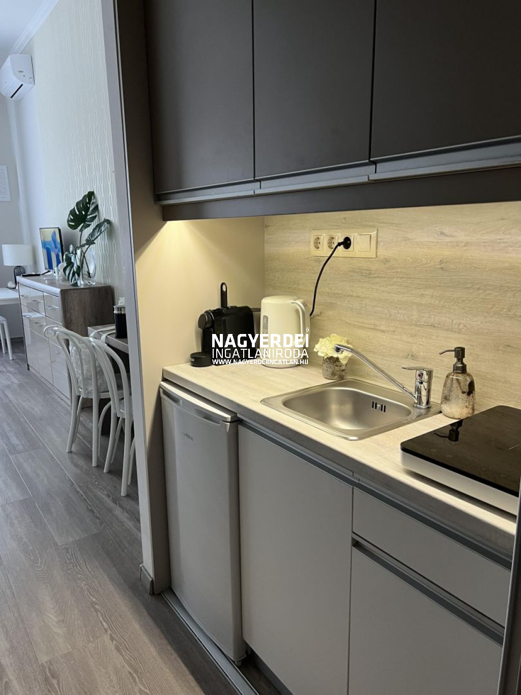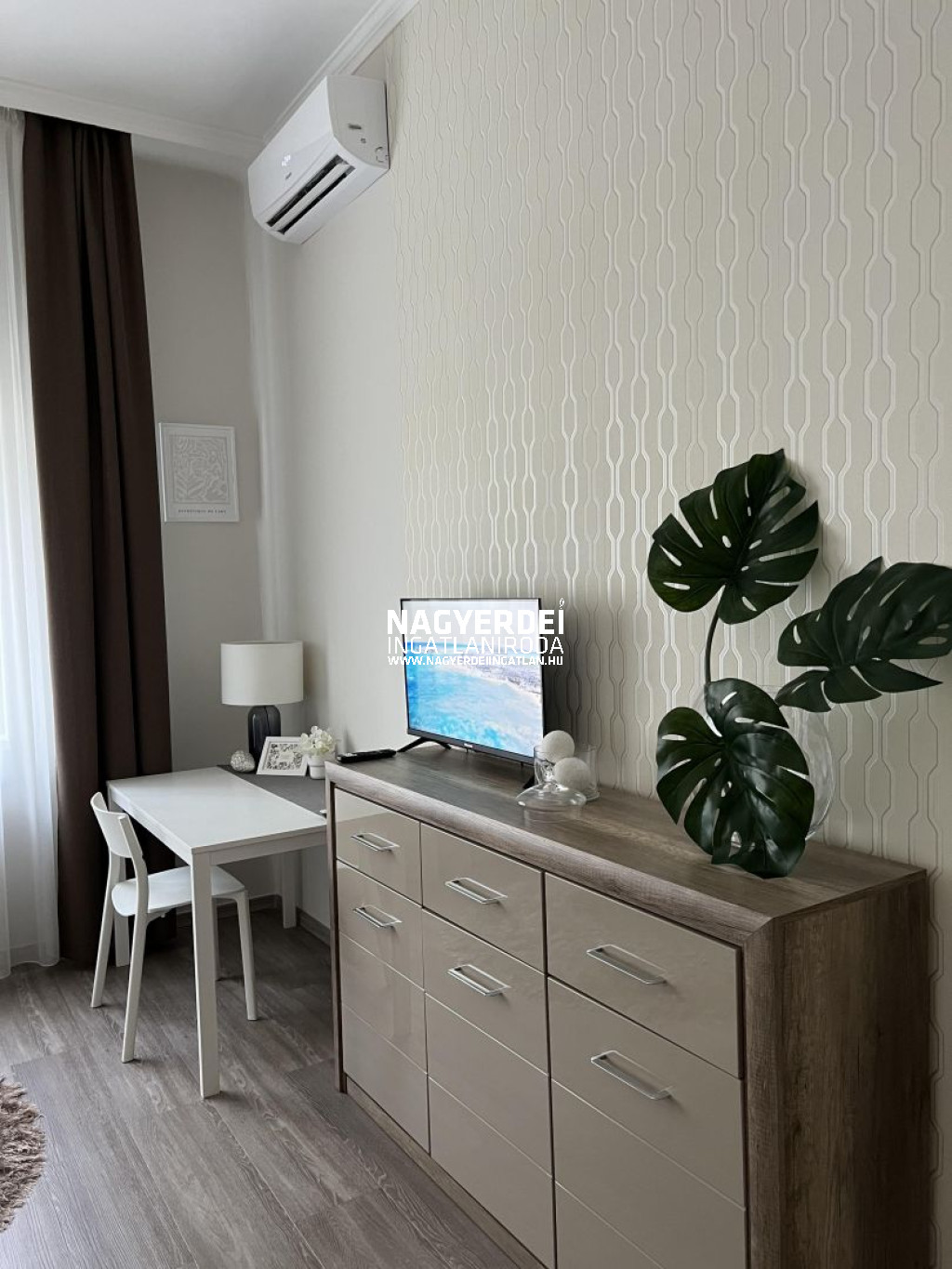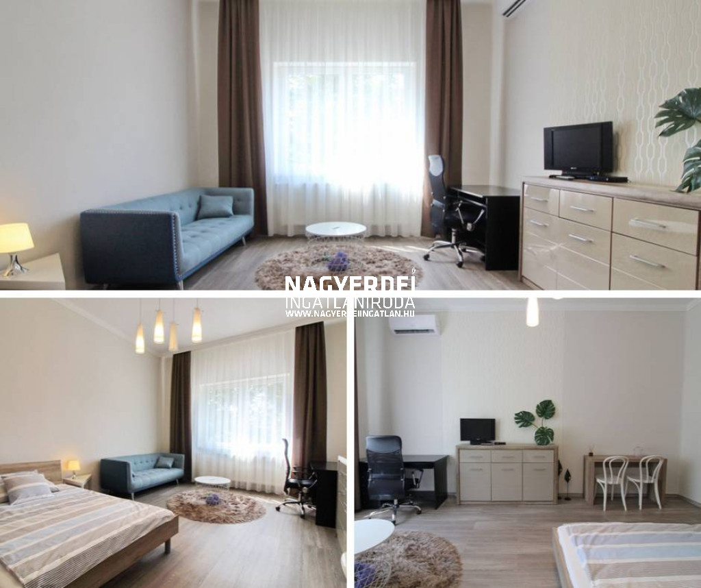 Debrecen szívében, a belvárosban kiadó 1 szobás lakás, felújított állapotban. Az első emeleten helyezkedik el, lift van az épületben. Légkondicionálóval felszerelt, bútorozott.