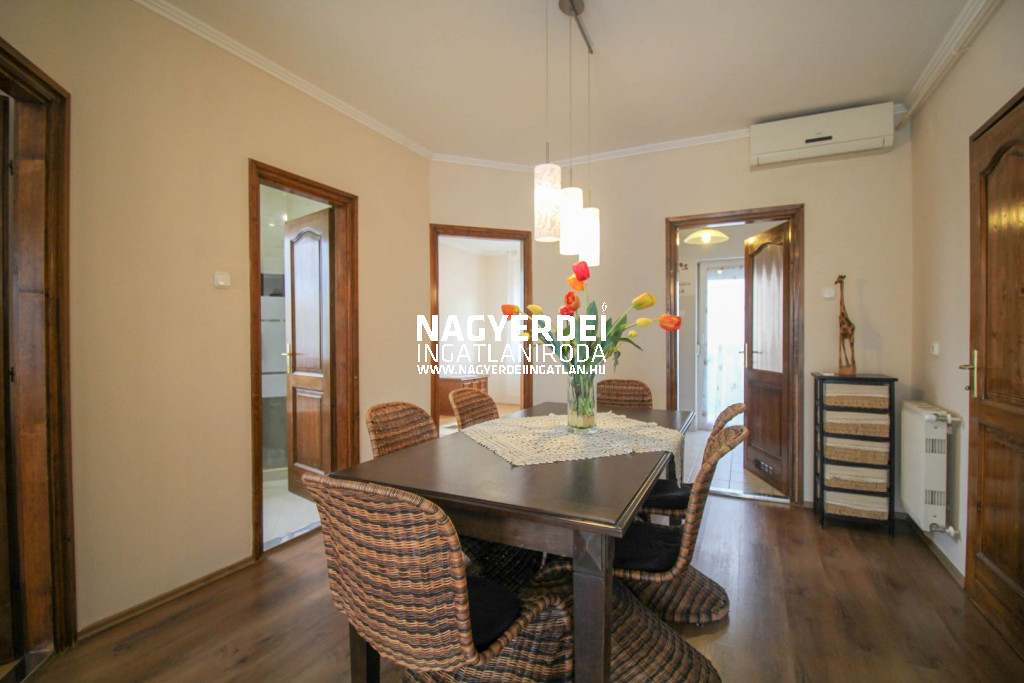 Debrecenben, a Kishegyesi úton található Tesco közelében kiadó egy 2. emeleti, 2 hálószoba + nappalis, tégla építésű lakás. Az ingatlan légkondicionálóval és mosogatógéppel felszerelt, erkéllyel, valamint egy közös használatú kerttel is rendelkezik. Fűtése gáz-cirkó. Parkolás az utcán ingyenes, emellett 25.000Ft /hó bérleti díj ellenében egy zárható, egyedi garázs is bérelhető hozzá.