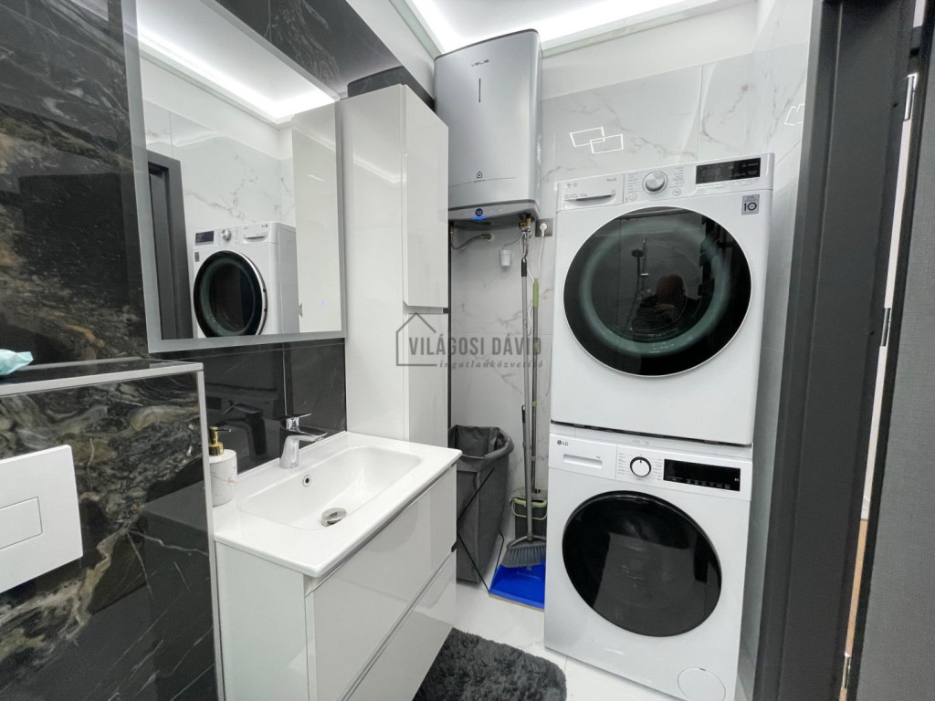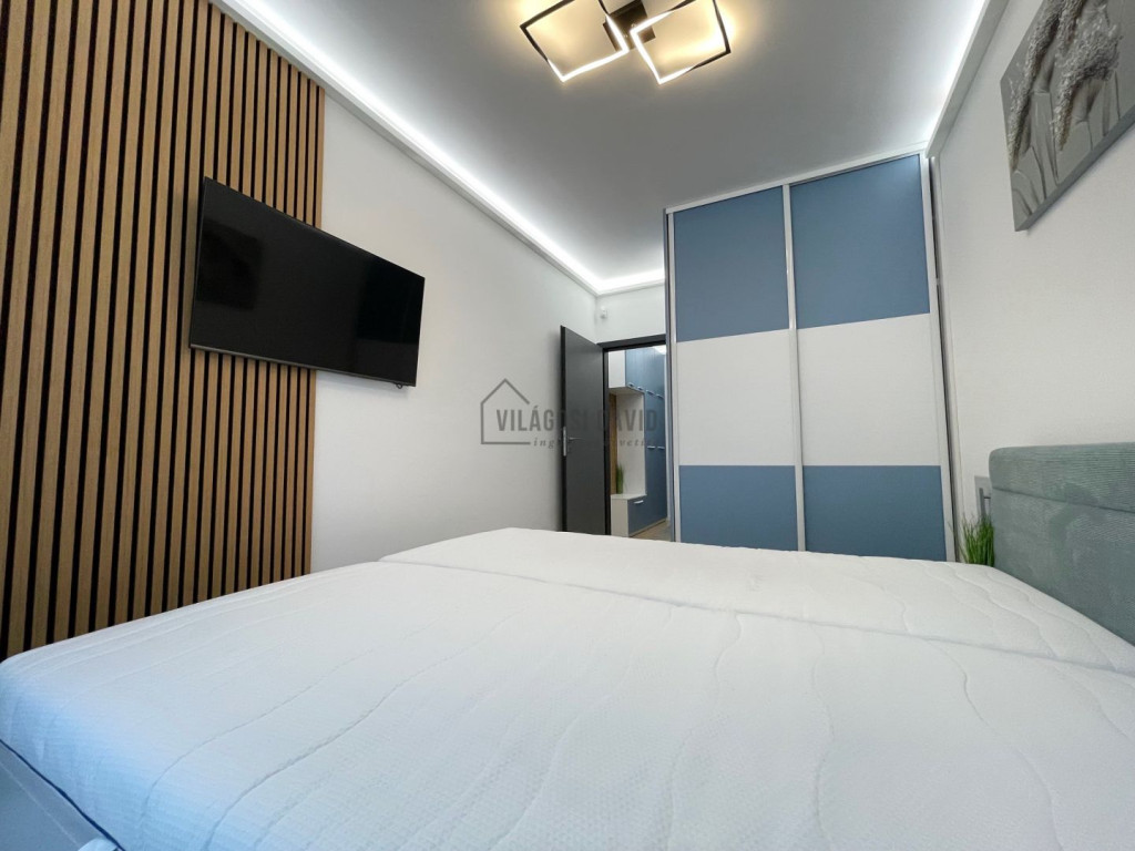 Debrecen-Nagyerdőalja városrészben a Vasvári Pál utcában, új építésű, hőszivattyús, szigetelt társasházban kiadó egy 1. emeleti, 50 nm-es, nappali + 1 szobás, igényesen berendezett, bútorozott és gépesített, klimatizált, teraszos lakás. A kellemes hőmérsékletről mennyezeti hűtés és fűtés gondoskodik.